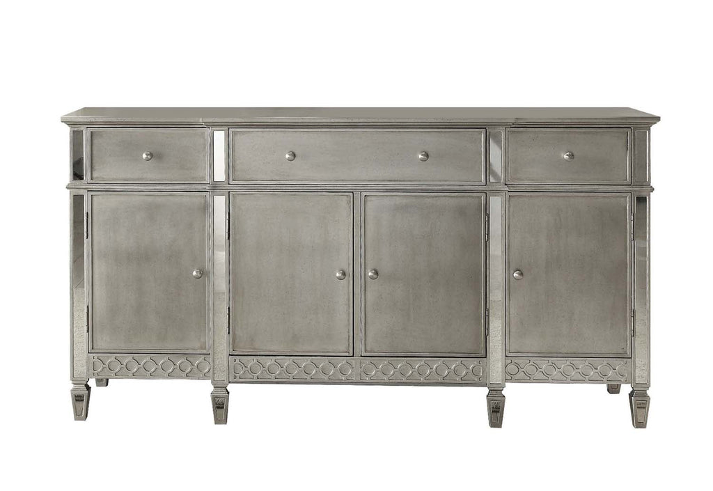 Crafted with past and present in mind, our Kacela dining collection revitalizes and transforms traditional designing ideas. A grand centerpiece, the rectangular table is handsomely finished and enriched by tapered legs and mirror insert top and edges. Paired with button tufted backrest side chairs with nailhead trim and matching server makes the whole set becoming an eye-catching one. This will be the best collection for your dining room.