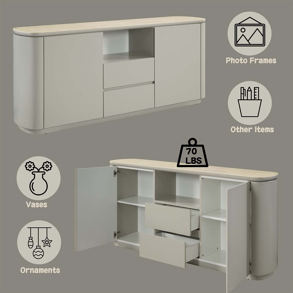The Ingram collection brings modern elegance to your home with its sophisticated pieces. The rectangular dining table and side chairs feature a light gray finish, creating a serene dining atmosphere. The server, with its ceramic top and light gray finish, offers stylish functionality. Complementing the set, the round coffee table and end table add a touch of refinement. This collection seamlessly blends contemporary design with practical elegance, perfect for enhancing your living and dining spaces.