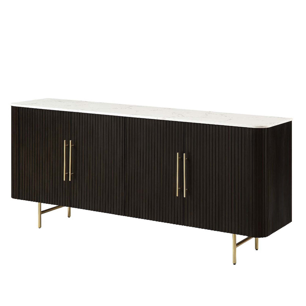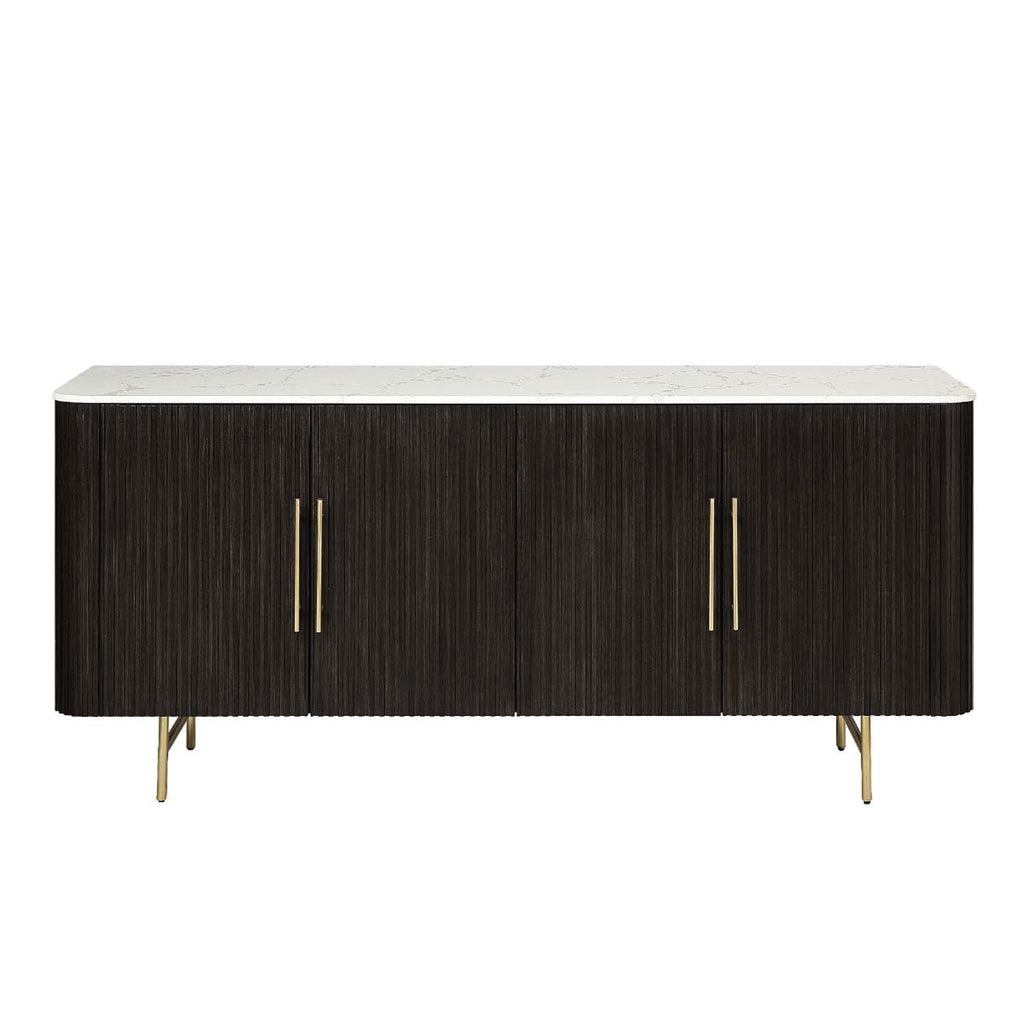 Clayten collection exudes elegance with its rectangular dining table featuring a fixed white marble top and double pedestal base with metal trim. Paired with upholstered chairs and a server with metal legs, this set blends sophistication and contemporary style. Perfect for hosting elegant dinners and creating memorable moments, the Clayten collection brings luxury and comfort to your dining space.