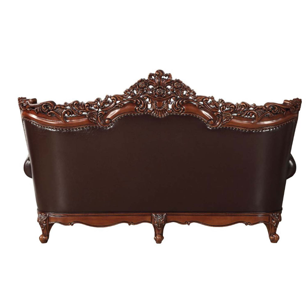 • Oversized Scrolled Carving Trim with Nailhead Trim: Poplar Wood (Detailed Carvings Inside/Outside Backrest, Front Arm, Legs & Base)