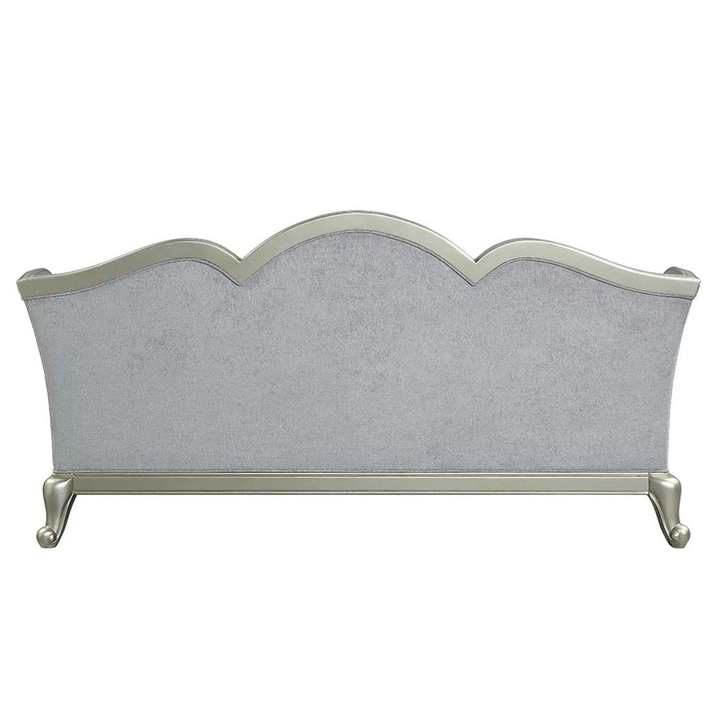 With a timeless silhouette influenced by French beauty, this Qunsia sofa makes a gracious statement in a comforting light gray linen upholstery fabric. Delicate curves invite the eye, while cabriole legs the champagne wooden trim that adds visual impact. Accent pillows in varying prints lend a look that's polished, yet impressive.