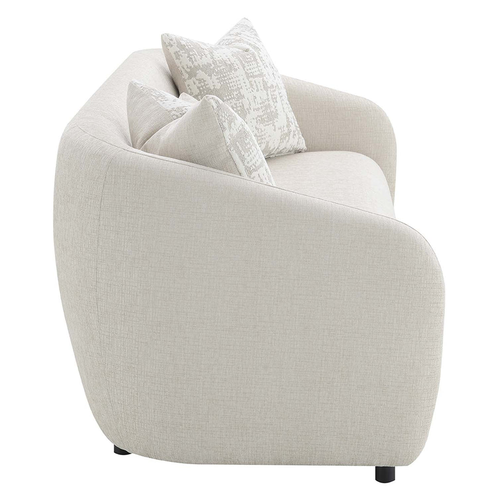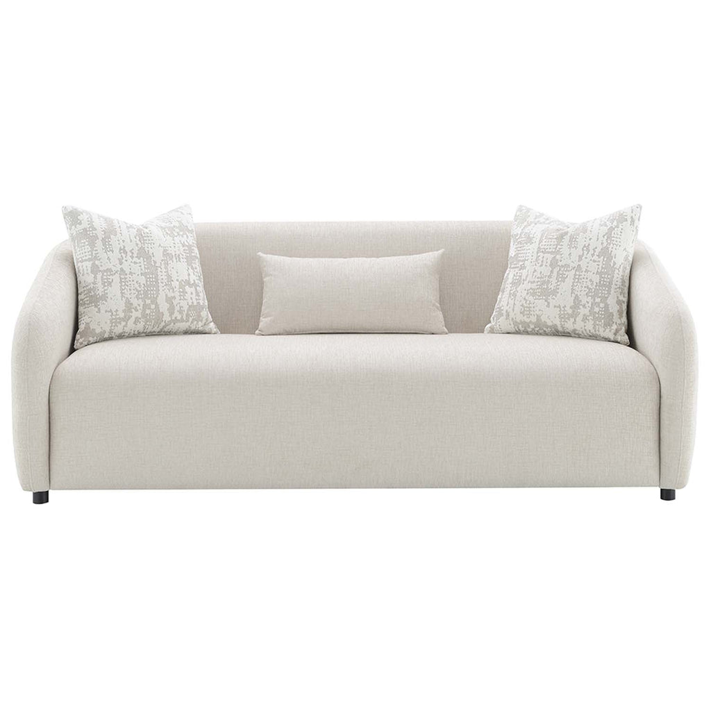 This Etienne collection sofa, available in beige and gray linen, combines modern elegance with comfort. Accent pillows are included to enhance both style and coziness, making this sofa an inviting addition to any living space.