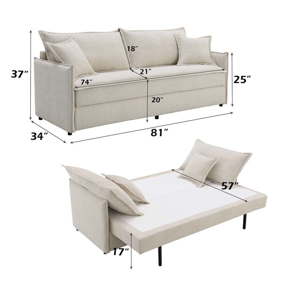The Elisea sofa with its elegant beige fabric, effortlessly blends sophistication and practicality. Its sleek design hides a convenient pull-out sleeper, perfect for accommodating guests with ease. The plush cushions and soft fabric provide unmatched comfort, making it an ideal addition to any living space. Whether for daily lounging or hosting, the Elisea sofa offers a perfect blend of style and functionality.