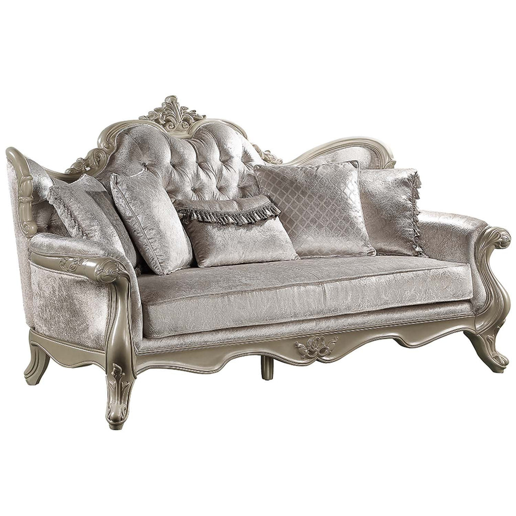 Libertee 85" Sofa w/5 Pillows, Beige Fabric & Champagne Finish