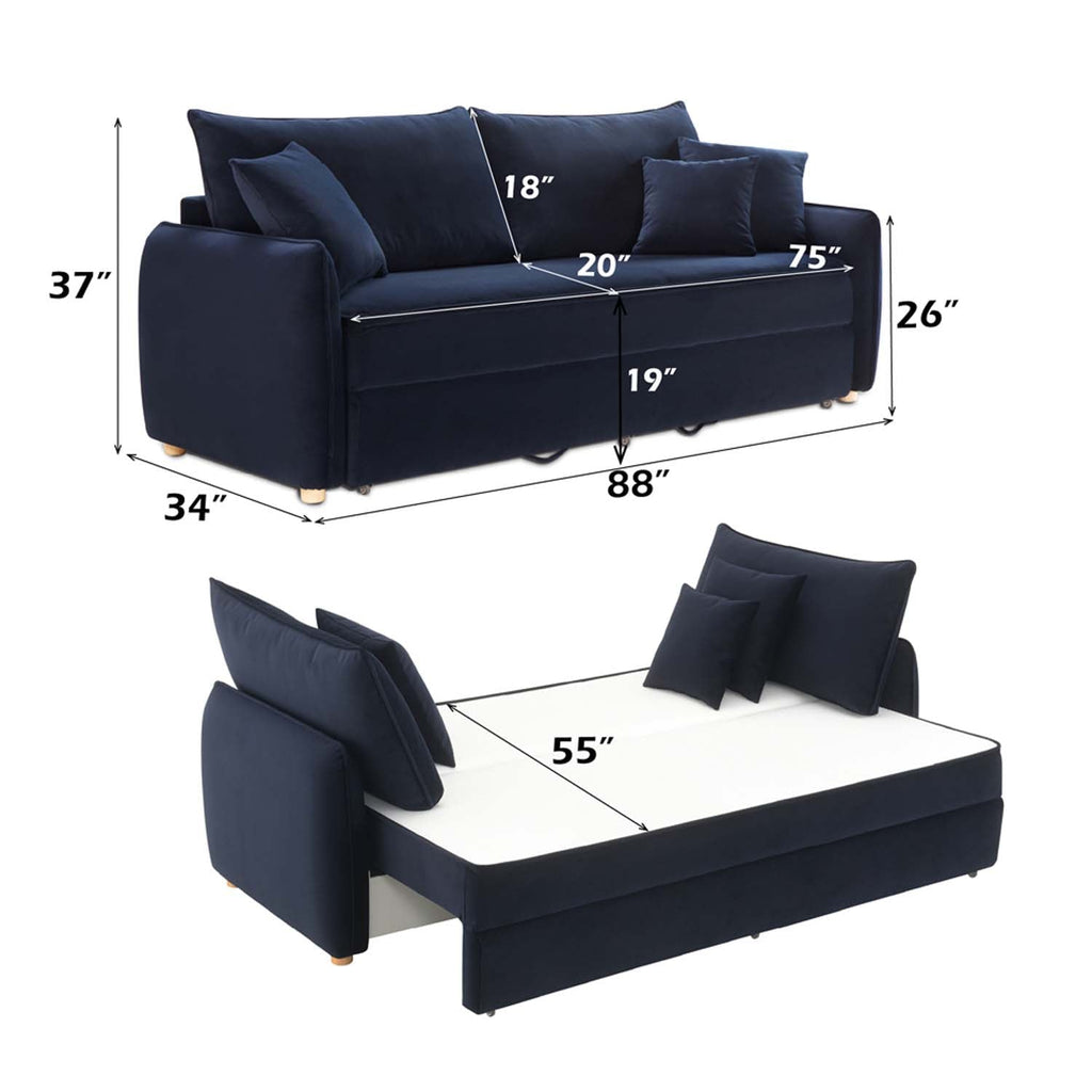 Irina 88" Sleeper Sofa, Blue Velvet