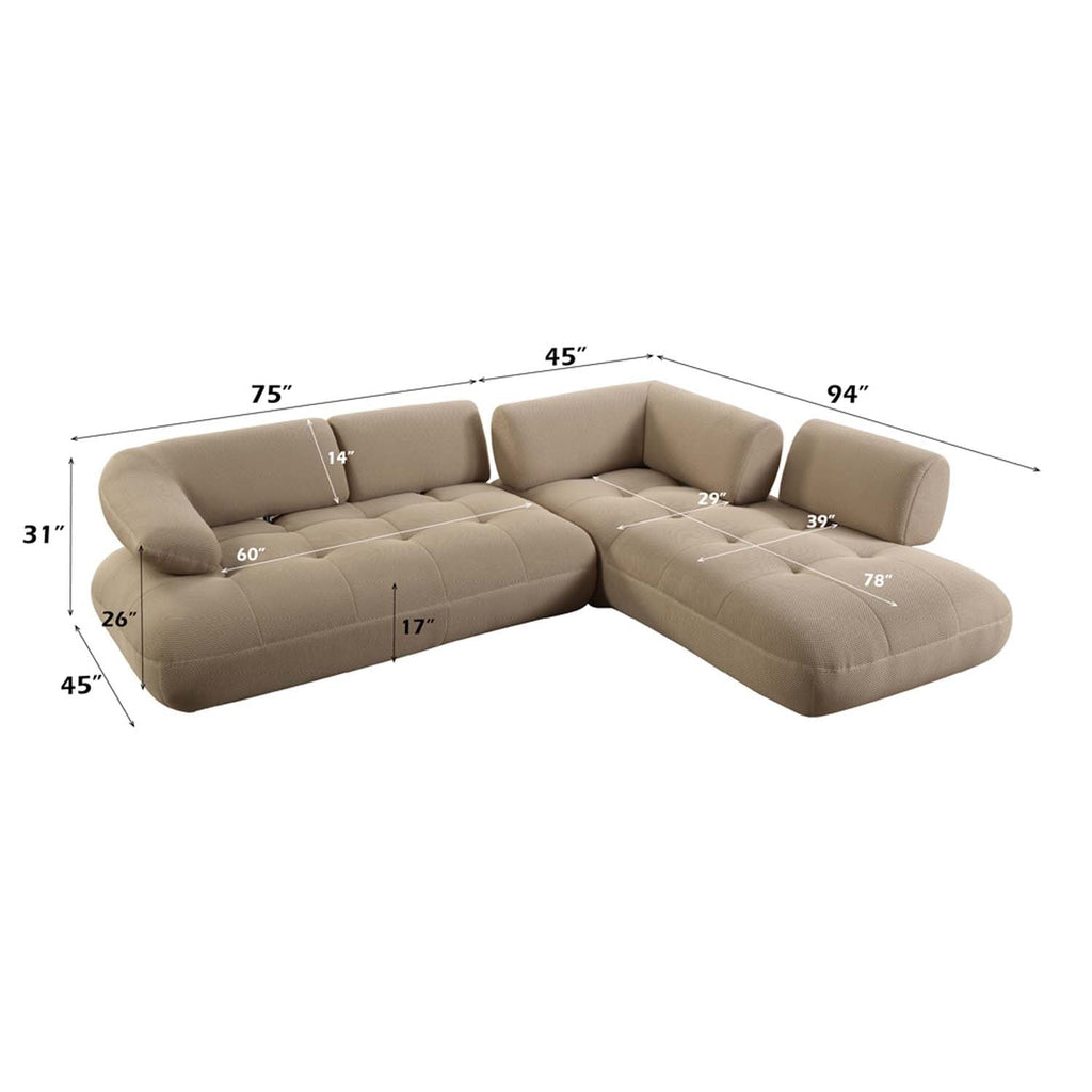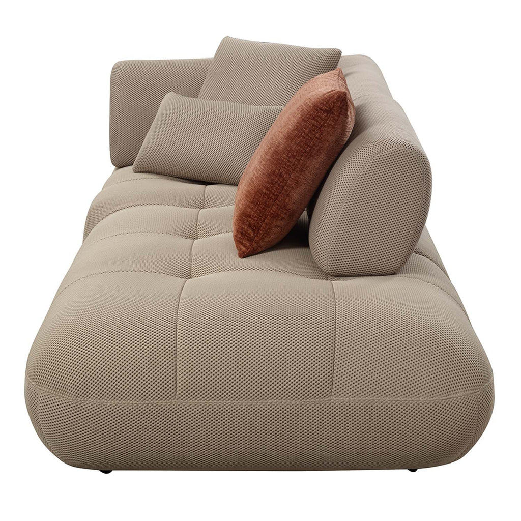 Discover unparalleled modern comfort with the Carrick sectional sofa. Draped in beige sandwich mesh fabric with a distinctive 3D texture, this sofa redefines luxury. The plush design and accompanying accent pillows enhance its inviting appeal, making it perfect for both relaxation and entertaining. Transform your living room into a chic, cozy haven with the elegance and functionality of the Carrick sectional sofa.