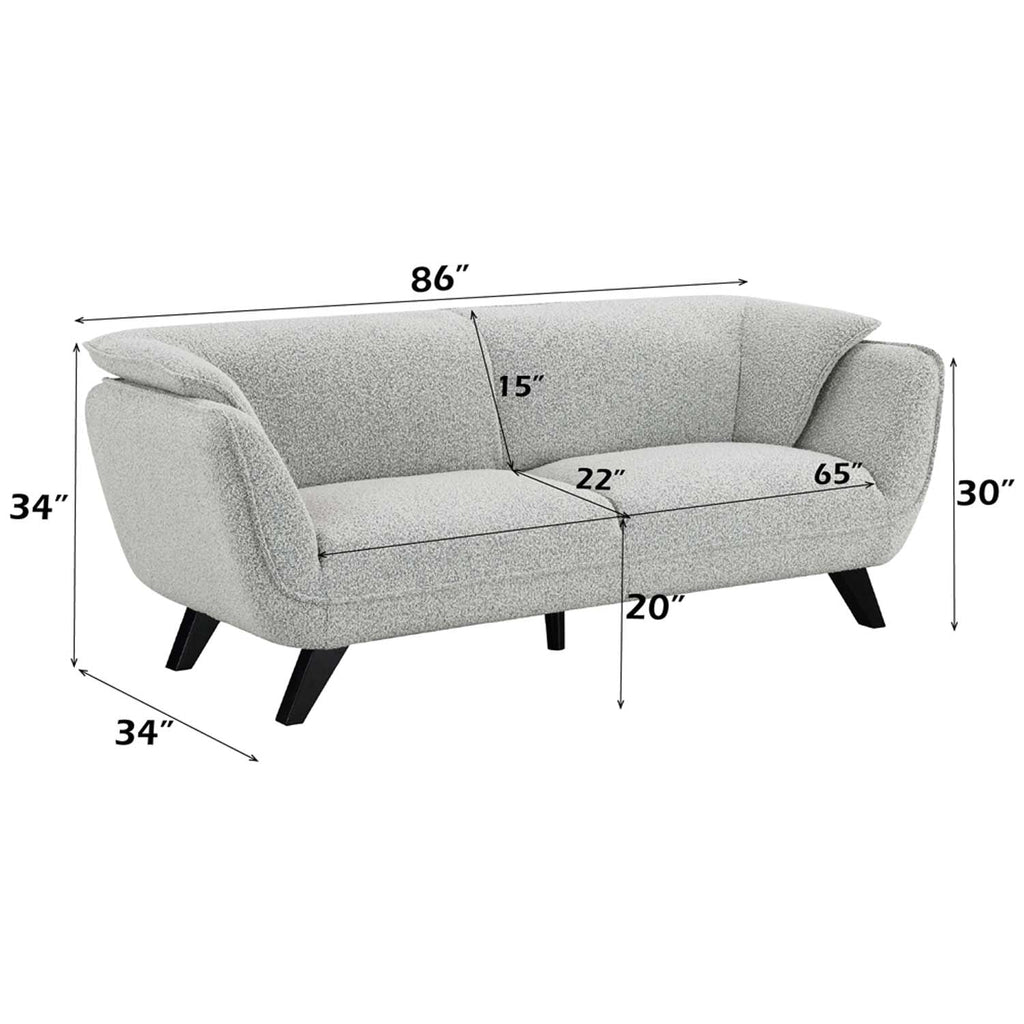 Unwind in the sophisticated charm of the Nayeli sofa, draped in light gray fabric. Accompanied by plush seatting, it offers a perfect blend of comfort and style. This sofa invites cozy conversations and serene relaxation, making it an ideal addition to any living room. Its timeless elegance and contemporary design promise to elevate your home decor, creating a welcoming ambiance for all who enter.