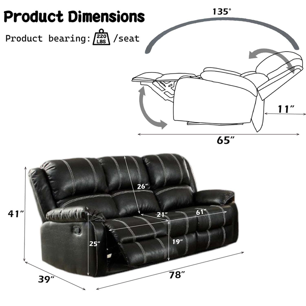 Zuriel 78" Motion Sofa, Black Faux Leather