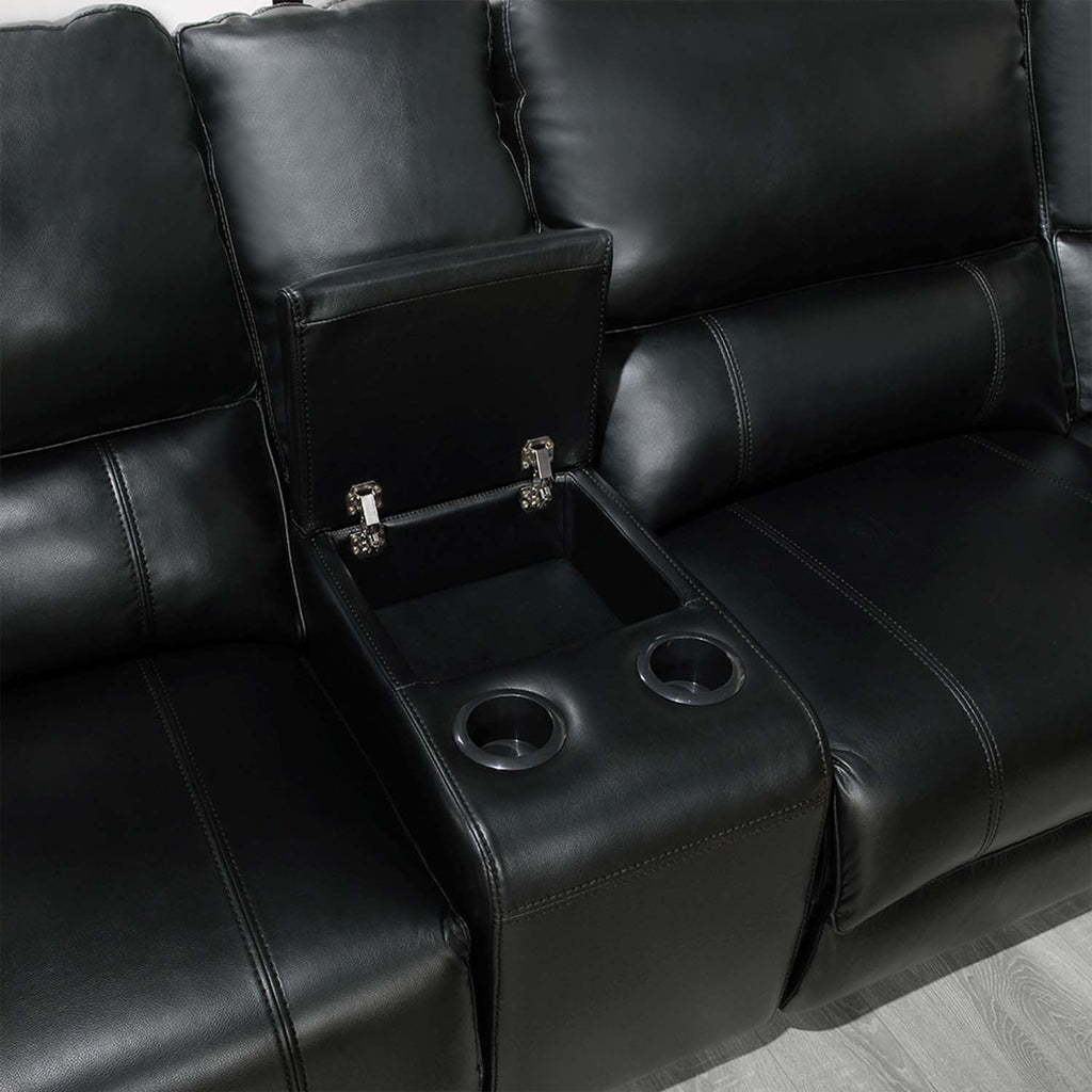 The Saul sectional collection offers luxurious contemporary looks and multi-function features. Fully wrapped with smooth leather-aire and framed with hard wood, quality and durability are guaranteed for your enjoyment. Features two power motion reclining seats and its complemented by USB Charging Docks provided at both ends, making it come in handy for you to charge any handheld devices. Available in Black, Gray or Espresso Finish
