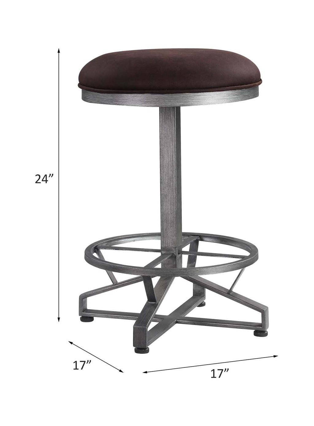 Seating is essential to your dining room decor. This versatile stool will bring in industrial home bar design into your space. It offers a round seat cushion with rustic brown upholstery for a great texture and feel. Metal cross base with footrest gives the stool extrem support and style. Create an ideal place where friends can sit long enough to share drinks and meals with Evangeline Counter Height Stool.