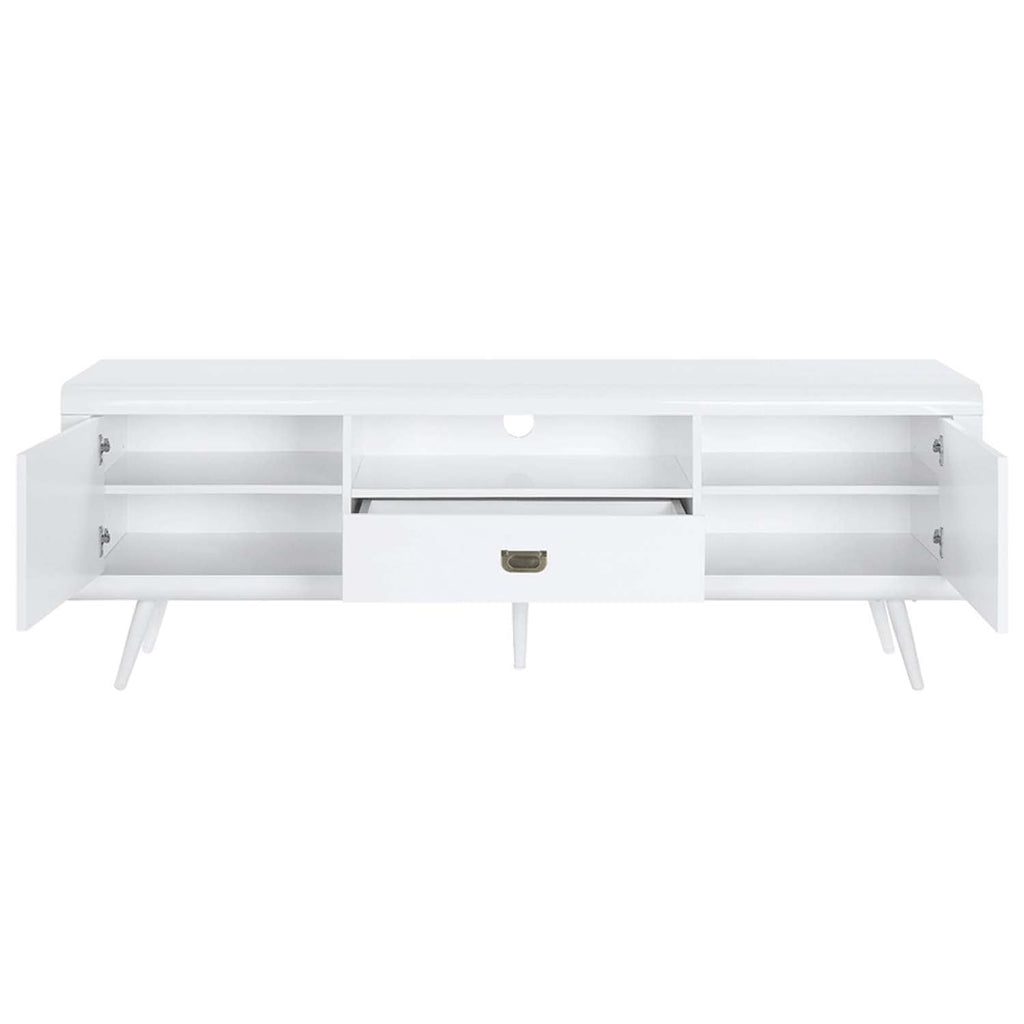 This TV stand offers the perfect combination of form and functionality. With its clean lines and versatile layout, it accommodates your entertainment needs with ease. Open and closed storage options keep everything organized, while the sophisticated design enhances your room’s overall aesthetic.