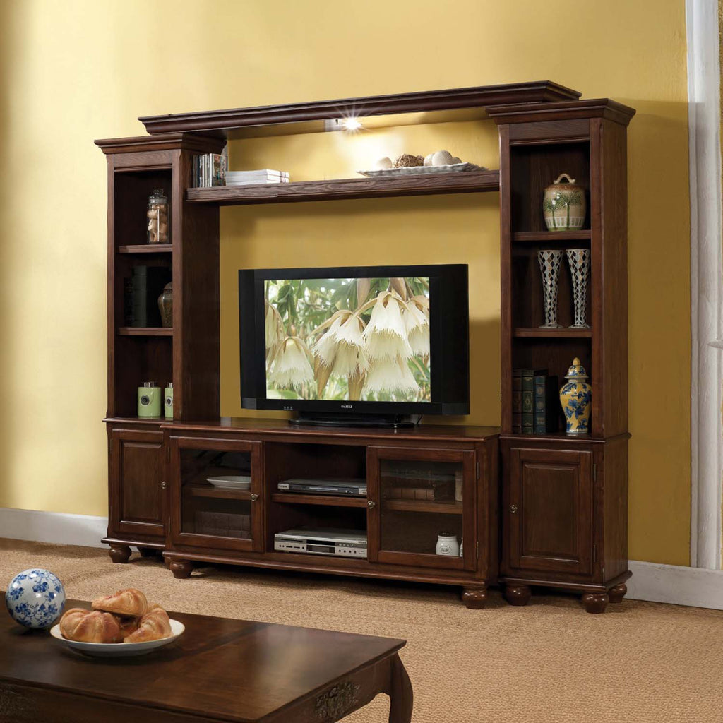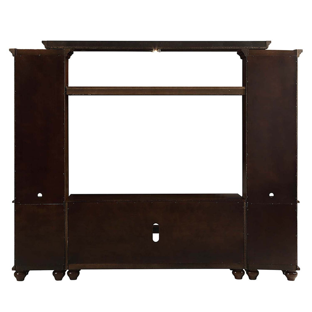 The Dita collection transitional style will blend masterfully in your living room area. This set features a shelf bridge with light function, and its two side piers offer plenty of space to keep entertainment components or your favorite decorative accessories. Carefully constructed from selected wood and veneers in rich Walnut Finish giving this piece a stunning and sleek appeal. *TV Stand Not Included