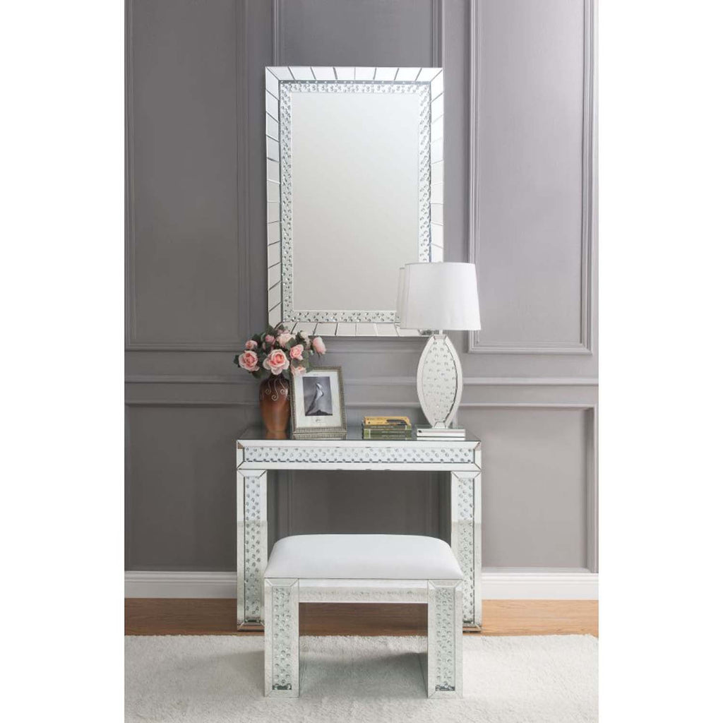 - Beveled Mirrored Finish, Clear Glass with Faux Crystal Inlay