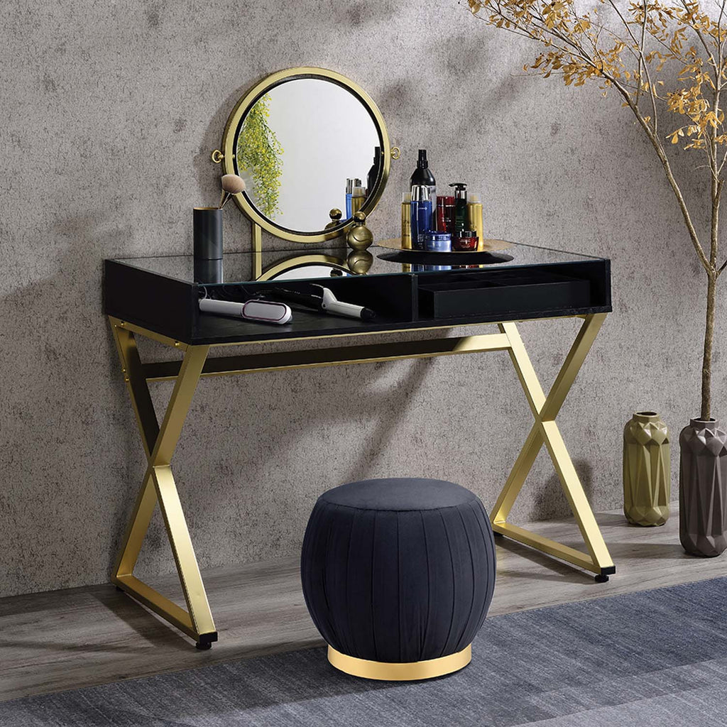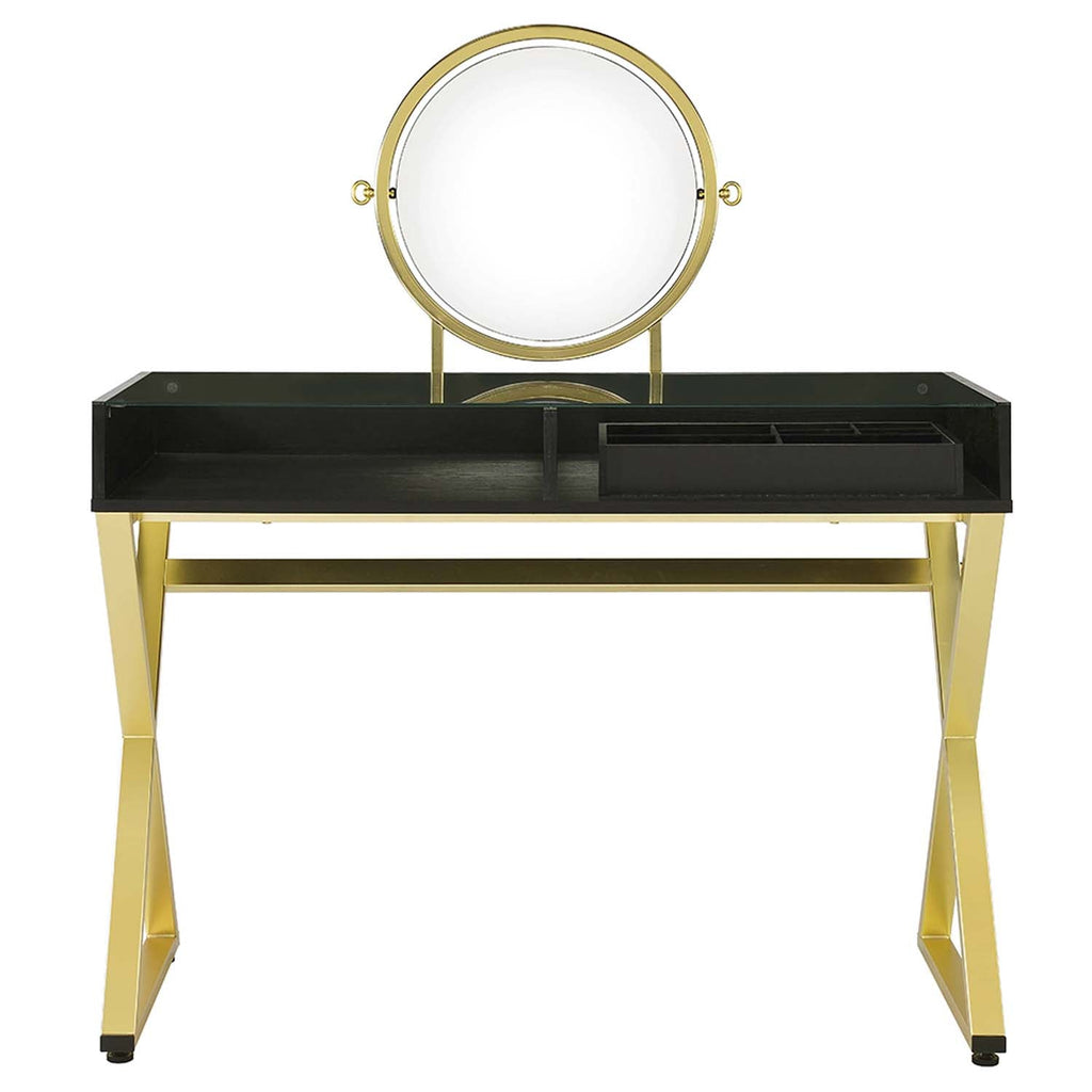 Coleen Vanity Desk w/Mirror & Jewelry Tray, Black & Gold Finish