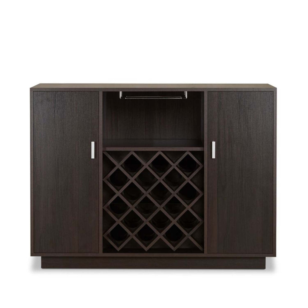 Store your beloved wines with this classic but trendy rectangular Hazen server to have them ready anytime. This server has 2 wooden doors with 1 shelf inside, wine rack and steam ware glass rack, providing plenty storage space for your convenience. Keep it close to your dining table to tuck away glasses, napkins and other essentials. Finished with espresso wooden frame, it will fit naturally in any design.