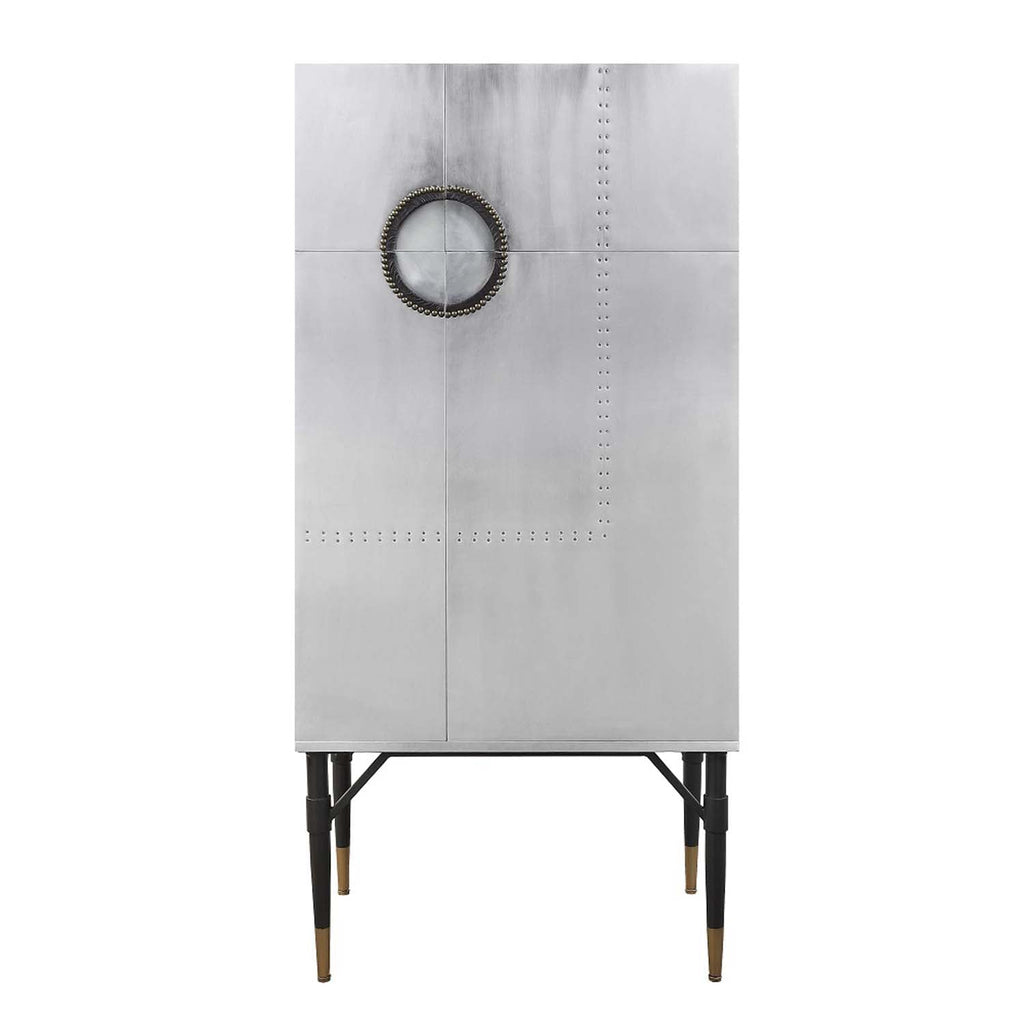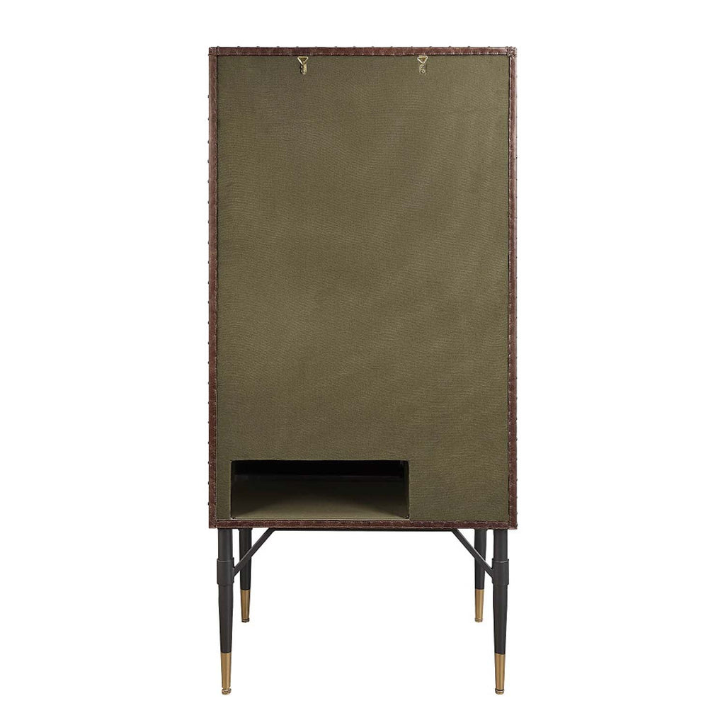 Introducing the ultimate wine cabinet for the modern connoisseur - our stunning Yoela wine cabinet. Crafted with precision and designed to impress, this wine cabinet is a true statement piece for any home. The combination of aluminum and bronze finishes adds a touch of elegance and sophistication, while the decorative rivets provide an industrial edge that will leave your guests in awe. The black iron legs with a gold metal tip not only add to the aesthetic appeal of the cabinet, but also provide a sturdy foundation for your prized wine collection. The cabinet boasts ample storage space with shelves to accommodate bottles of all sizes.