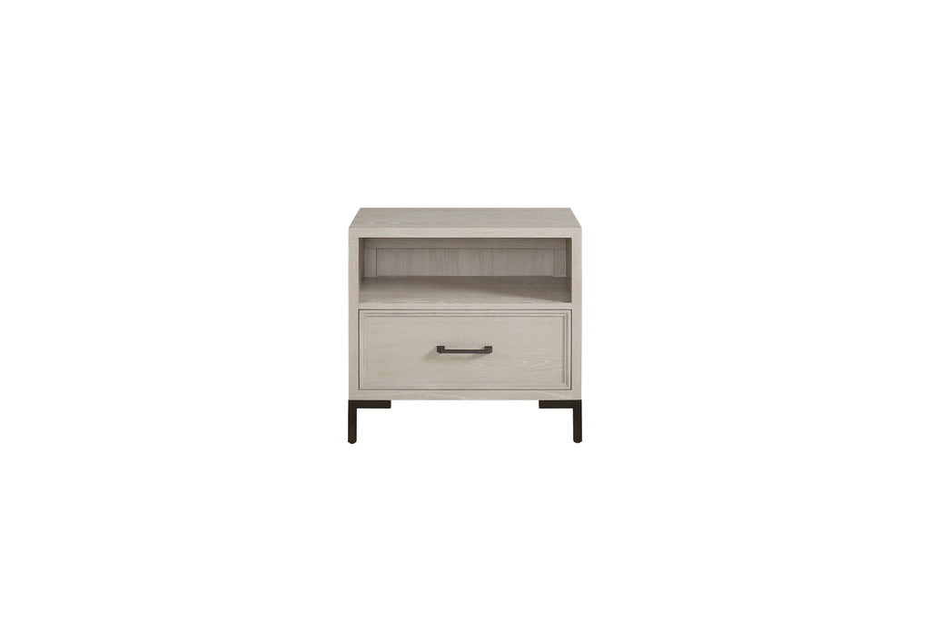 Enhance your bedside with the Margo Nightstand, a perfect blend of chic simplicity and modern functionality. With light assembly required for the metal legs with levelers, this nightstand is both stylish and sturdy. The English Dovetailed Drawers and Ball Bearing Drawer Glides ensure durability and smooth operation, making it easy to access your essentials. The Felt Lined Drawer adds a touch of luxury, providing a soft spot for delicate items. Additionally, the open shelf offers a convenient display area for books or decorative items. Finished with metal legs and levelers, the Margo Nightstand is a contemporary piece that effortlessly elevates your bedroom decor. Upgrade your bedside experience with this stylish and practical addition.