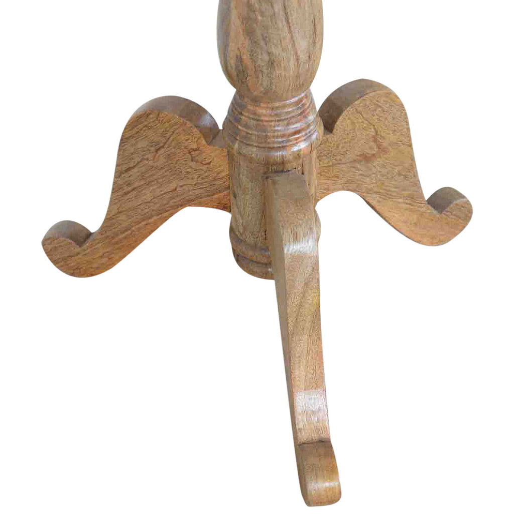 Create an elegant afternoon tea experience with this Tea Table. Drawing inspiration from a classic French design it combines graceful curves with warm wood tones. Crafted from solid mango wood with an oak-ish finish this round table is the perfect piece for any dining room or kitchen. Every piece of furniture is individually handcrafted and includes swing care tickets explaining the cautions and aftercare instructions.