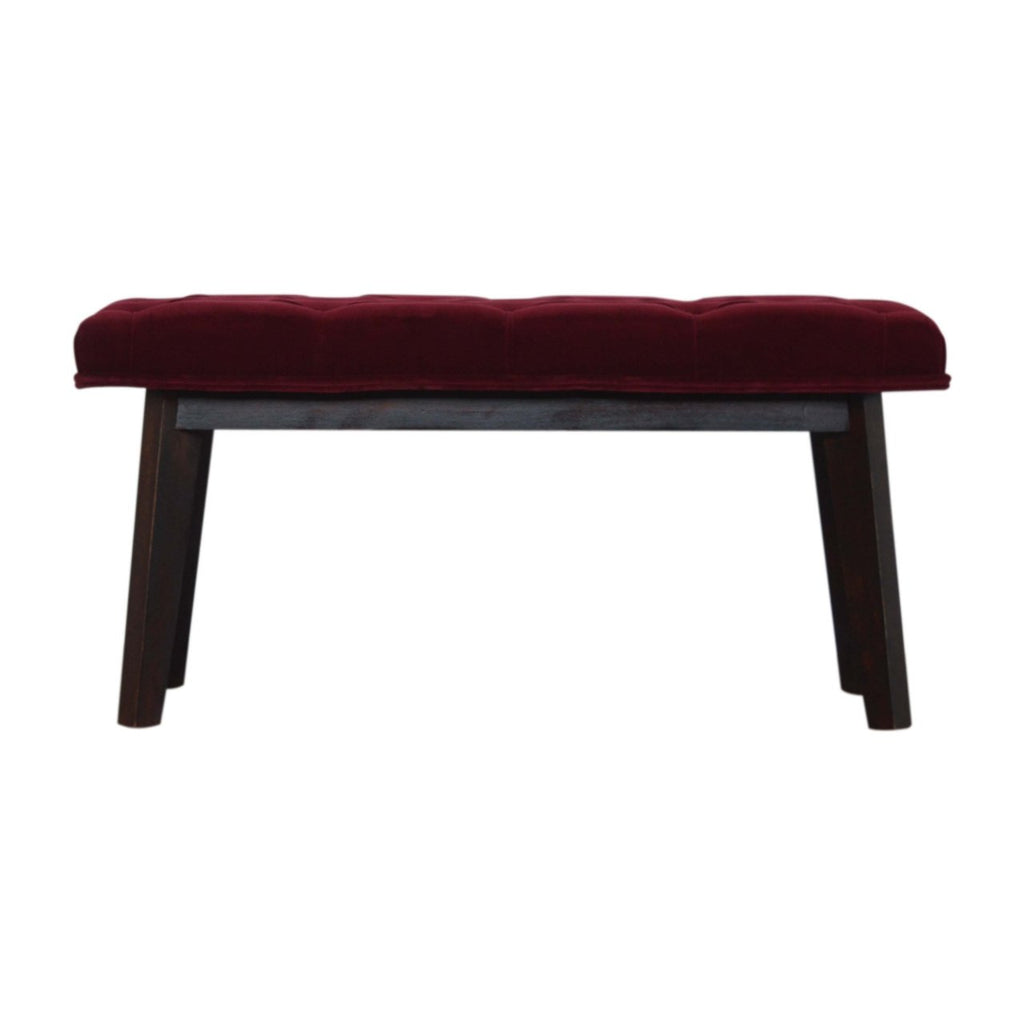 Beautifully upholstered in a plush wine red cotton velvet fabric this stylish piece offers a comfortable spot to sit down or put your feet up. The Nordic style legs have been constructed in 100% solid mango wood and finished in a walnut finish which gives an enduring appeal that's perfectly suited in a hallway or below a window in your living room.