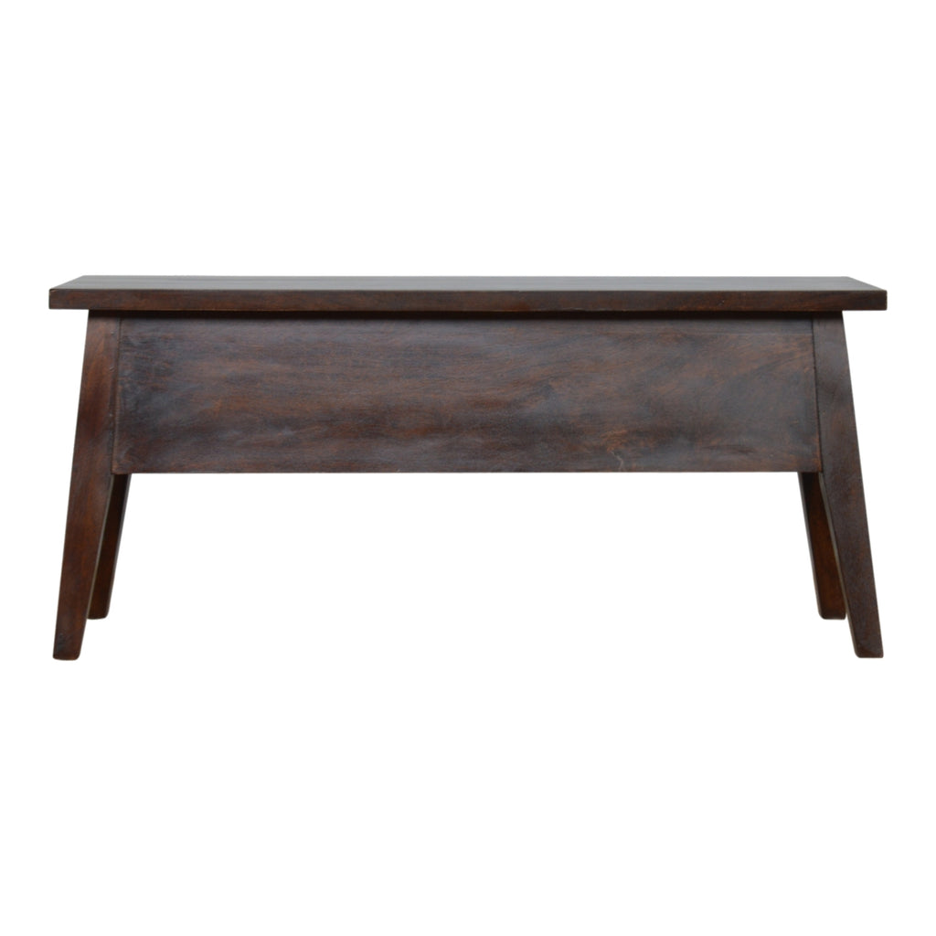 This storage bench is constructed from 100% solid mango wood and has a fine walnut finish. Useful storage space is provided under the seat, and the lid stays open so you can safely and easily take things in and out. A both good-looking and practical bench that gives a warm, cosy feeling works just as well in the living room, hallway or bedroom. Other features include 4 Scandinavian styled legs.