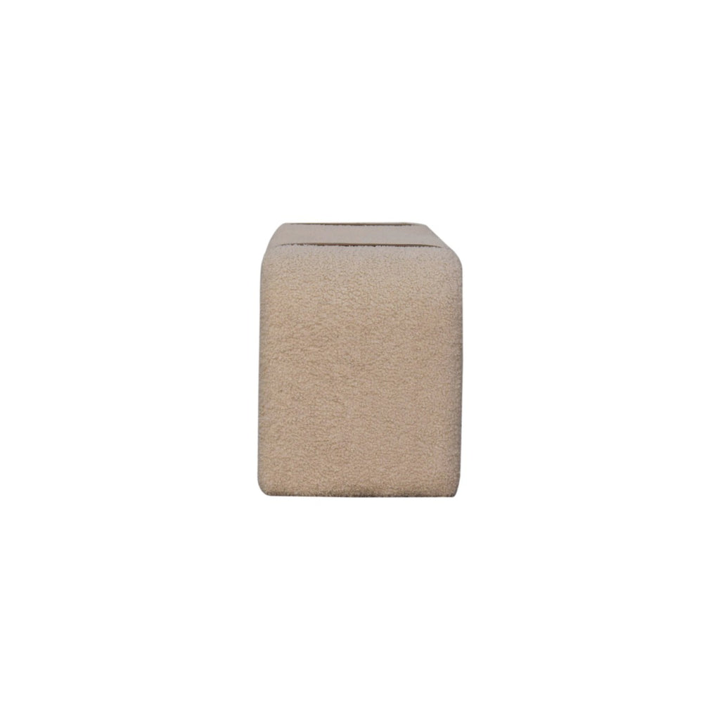 Derived from the French word for ‘curled’ or ‘ringed’ yarn or fabric. This handwoven upholstered furniture piece is made of 100% cotton and natural yarn. This bench showcases a contemporary curved design with a plush, cushioned top for comfortable seating. It features a distinctive belted strap design on both sides, making it an elegant addition to any hallway, reception area, or living room.