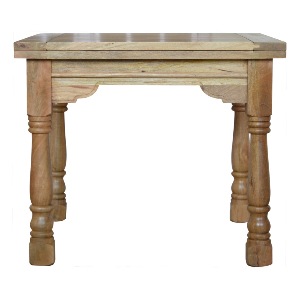 For intimate dinners for two, this lovely butterfly table is perfect for kitchen-diners or small dining rooms but neatly extends to seat four to six people when necessary. This table extends with a very simple to use butterfly extension that stores below the tabletop. With a simple practical design and touches of country charm; made from 100% solid Mango wood with a fine hand-distressed oak-ish finish, this piece has been built to last.
