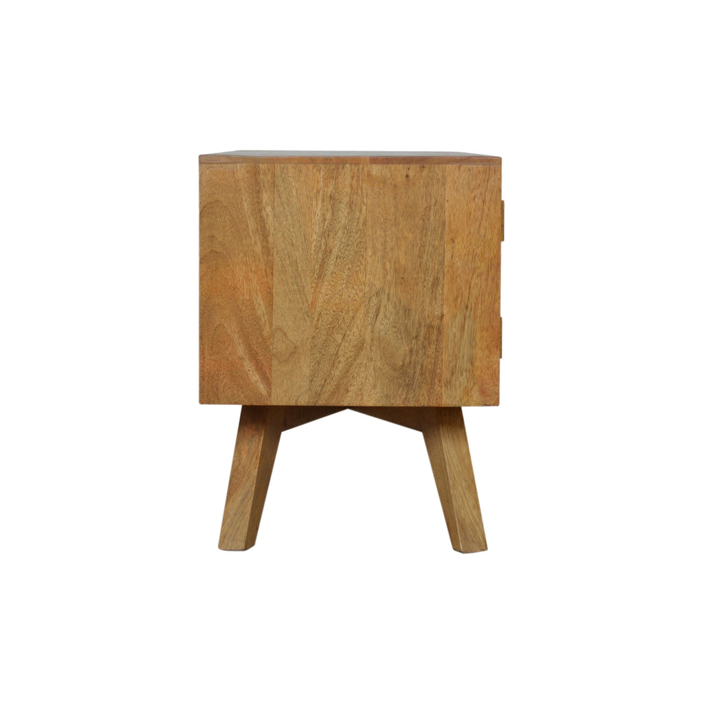 This divine media unit has been constructed from 100% solid mango wood with an oak-ish finish body and grey painted drawer fronts which include candle knobs for easy access to and from the drawers. This modern and simple piece would compliment any living room and is ideal for compact city homes.