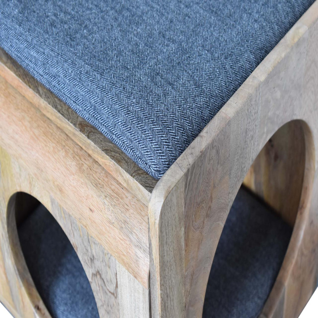 This pet bed has been constructed from 100% solid mango wood in a oak-ish finish and has a comfortable padded seat indside upholstered from black tweed that we reckon your furry friend will love. It also has a seatpad on top which will come in use in the hallway or living room as a seat when convenient.