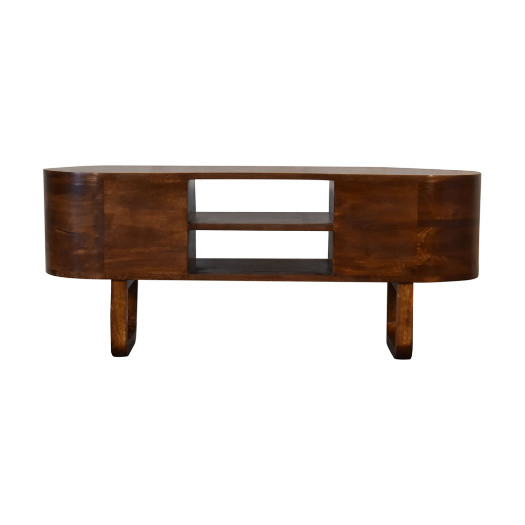 This media unit has a strong and heavily dependable presence in your home while its beautifully constructed design allows for it to fit perfectly into your home. It is made with 100% solid mango wood and a fine oak-ish finish keeping that perfect natural look. With many ways to store using this item it compliments your home allowing objects such as video games, controllers and mobile gadgets to be kept safe in a knowing place.