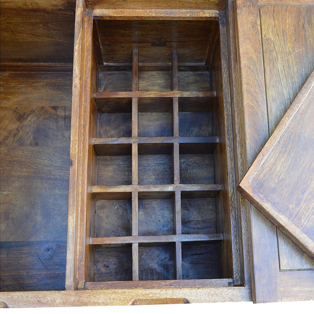 Add this folding tucker table to your dining room, conservatory or hallway. It features an open compartment in the middle which is handy for placing any bottles of wine and 2 lid up storage seats which can be used for late night laughs with friends and family, and perfect for stroring away any blankets or cushions. It has been constructed from 100% solid mango wood in a chestnut finish and 4 straight.