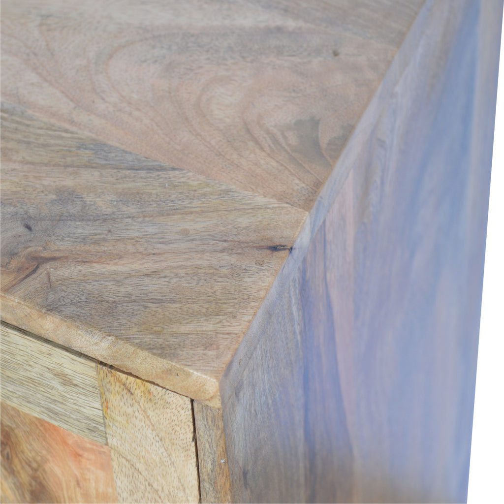 This 2 door handy cabinet has been constructed from 100% solid mango wood and has a fine oak-ish finish. Its design provides space with 2 large doors that offer useful storage inside for wine glasses, food and a shelf for storing any other dry food or alcohol. Other features include shiny knobs and 4 Scandinavian styled feet. The perfect addition to a kitchen in any home.