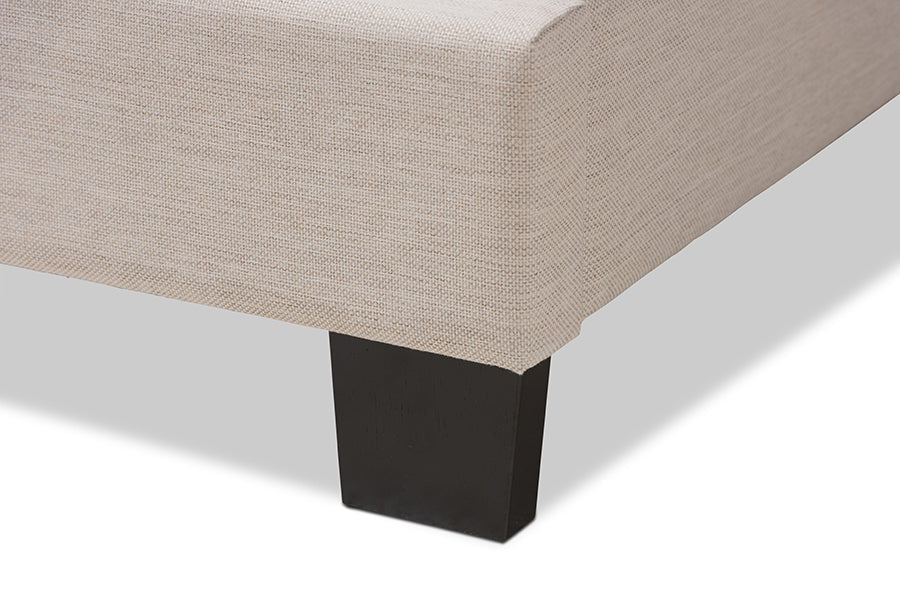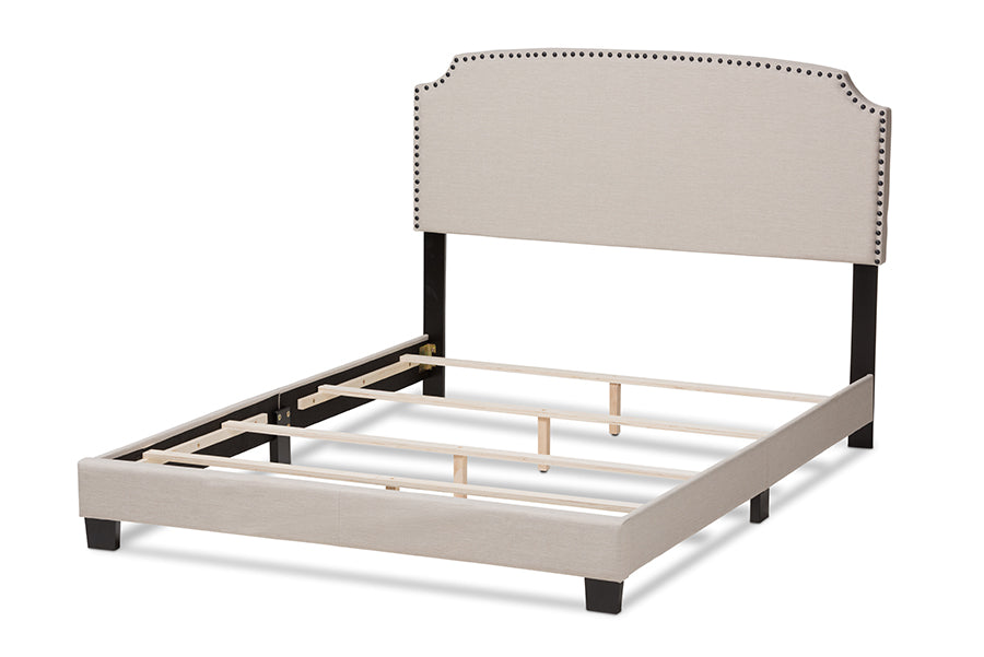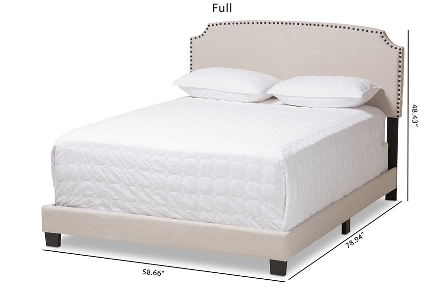 The Schiuma full size bed has a style that is both contemporary and timeless. The modern and contemporary-inspired design is versatile and easy to coordinate with your décor. The Schiuma features light beige fabric upholstery and a low profile footboard styling. The curvaceous headboard is padded and has a stylish nailhead trim. Refresh your guest room with the Schiuma, or keep the style for yourself in your own bedroom. This bed is made for use with a box spring and mattress. Made in Malaysia, the Schiuma requires assembly.