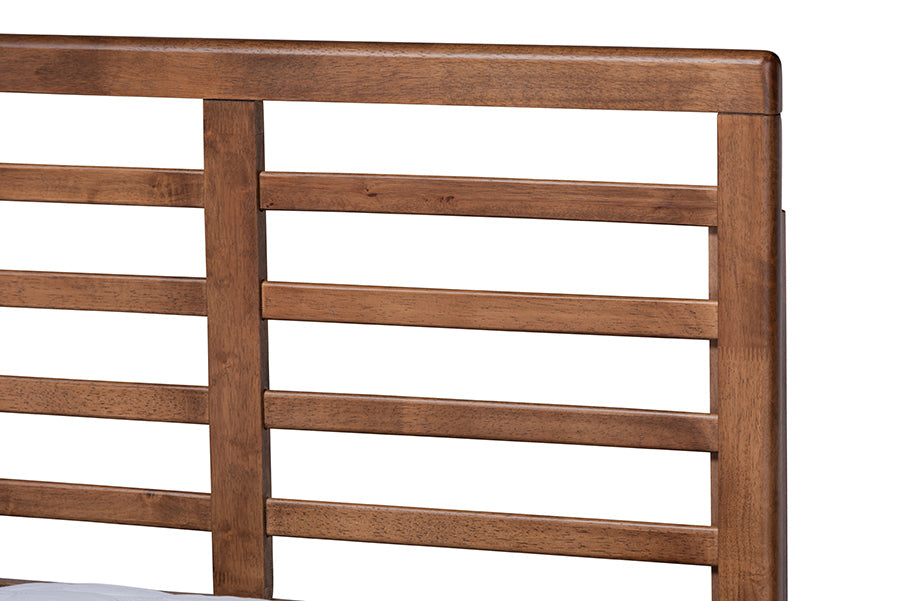 Bring depth and levity to your bedroom with the contemporary Sedona bed. The Sedona bed features a wide-set slat headboard comprised of ash walnut brown finished wood, ideal for providing a light and open feel in smaller spaces. Made in Malaysia, the Sedona includes an upholstered platform base fitted with wooden slats, eliminating the need for a box spring. The Sedona requires assembly and comes with six pre-drilled holes on the headboard to provide five unique height options for a customized setup. Bring a cozy yet stylish ambiance to any bedroom with the inviting Sedona bed.