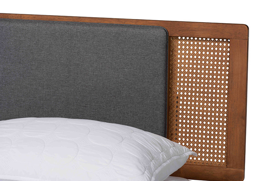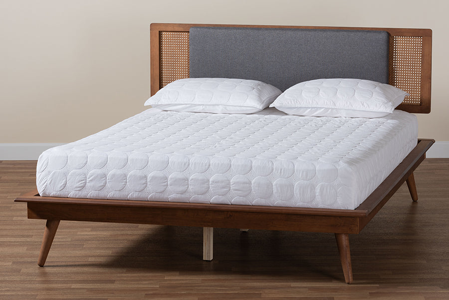 Rina Dark Gray Fabric and Walnut Brown Full Size Platform Bed