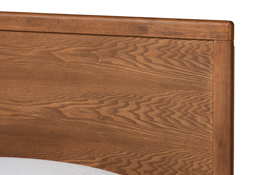 Revamp your bedroom with the retro charm of the Saki bed. Made in Malaysia, the Saki is constructed from wood showcasing a walnut brown finish that adds warmth to any space. Assembly is required and a box spring isn’t needed, as the Saki comes with internal slats for mattress support. Inset paneling on the headboard adds depth and texture while accentuating the natural grain of the wood. Angled legs add a cool, mid-century touch, making the Saki bed a distinctive addition to the bedroom.