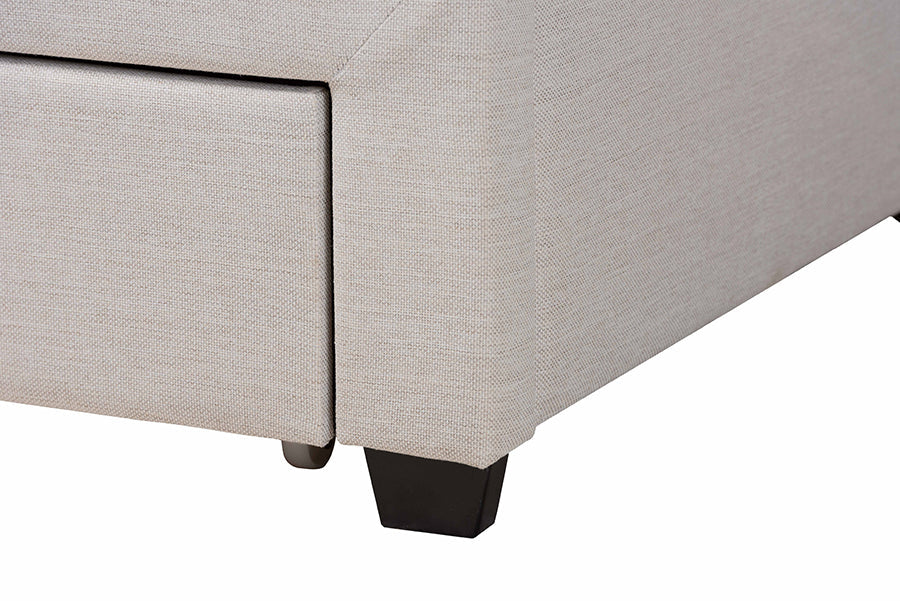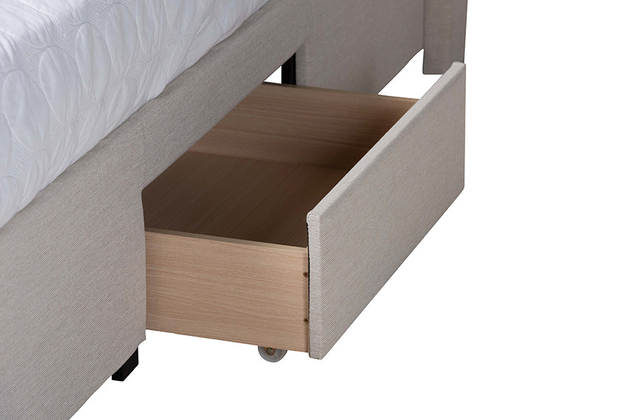 Transform your bedroom into a harmonized haven with the beautiful and efficient Alba storage bed. Made in Malaysia, this mid-century inspired piece consists of a sturdy wood frame padded with plush foam and upholstered in sumptuous fabric. Remarkably efficient, this sleek design accommodates for modern needs with a wide drawer at the footboard as well as two additional drawers located at the sides. The Alba requires assembly and utilizes wood slats for mattress support, eliminating the need for a box spring. A channel tufted design nestled within the wingback headboard creates a gorgeous backdrop, making the Alba storage bed an exquisite bedroom centerpiece.