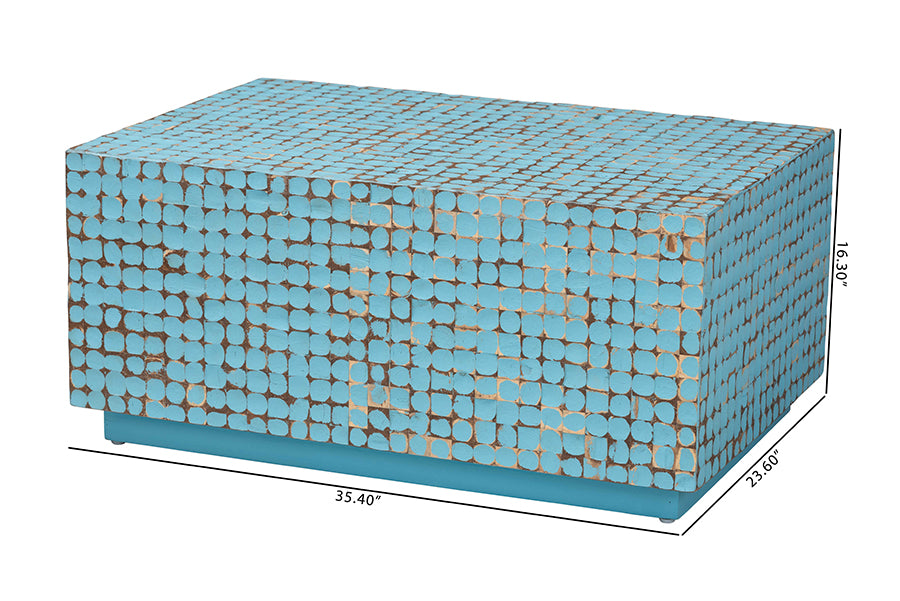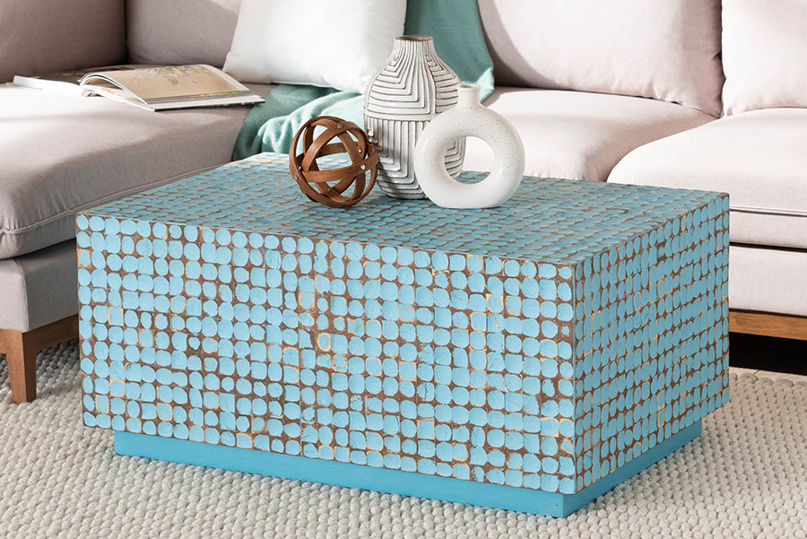 Arrange an atmosphere of exotic ease in your space with the stunning Stella coffee table. Made in Indonesia, this bohemian piece consists of a sturdy wood frame tactfully arranged with carved coconut shells for an entrancing mosaic display. Its broad frame and rectangular tabletop facilitate the piece as a fantastic anchor point for any layout. Each rendition of the Stella coffee table is meticulously handcrafted by skilled artisans, resulting in a truly unique execution where no two pieces are exactly alike. The Stella will arrive fully assembled and is fitted with floor protectors to blend in with any desired arrangement. Emitting the essence of paradise, the Stella coffee table brings an air of ease to any space.