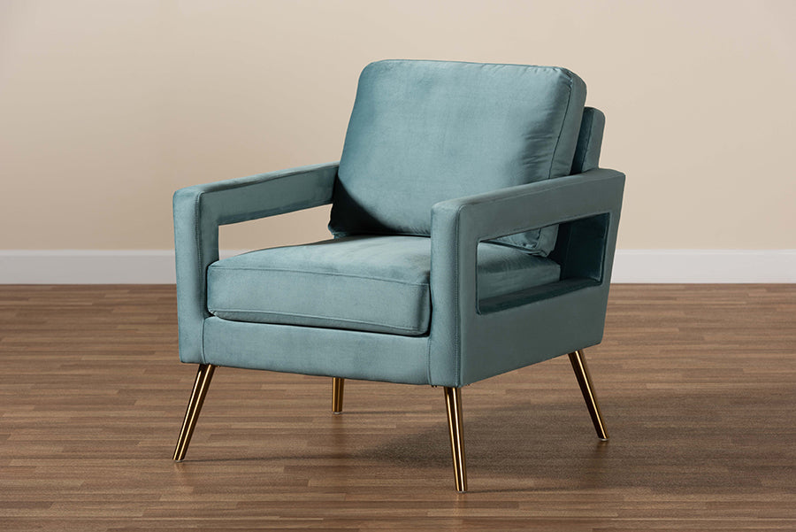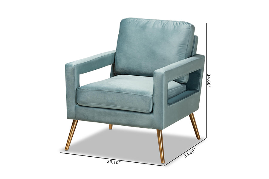 Prewitt Light Blue Velvet Fabric Upholstered and Gold Finished Armchair