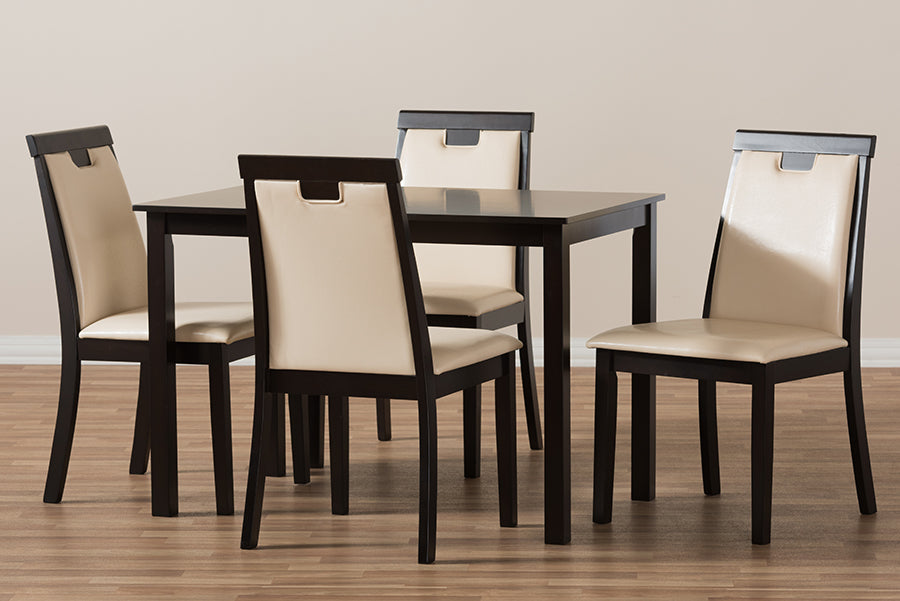 The Reinu 5-piece dining set embodies stylish classic design, clean straight lines and smooth faux leather upholstery. With flawless simplicity, it’s suitable for any dining room. Solid rubber wood construction guarantees a good amount of years to come. Foam-padded seat maximizes comfort and makes it ideal for extended seating. So sit back and enjoy those Deep dinners and conversations with your friends and family. Made in Malaysia, the Reinu dining set requires assembly.