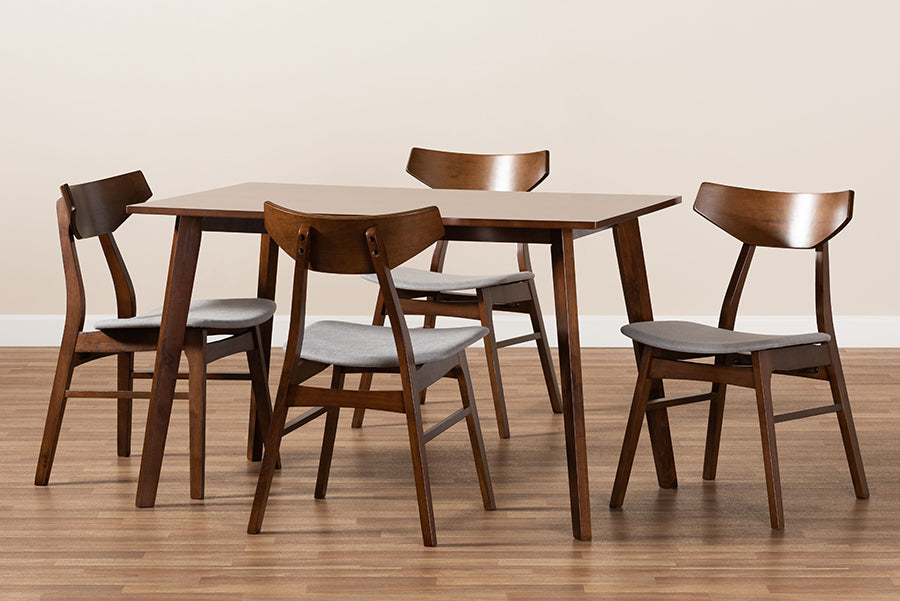 Efficient and streamlined design make the Venezia dining set an easy addition to any dining space. Made in Malaysia, the Venezia is crafted from sturdy wood and comfortably seats up to four. Walnut brown finished wood and a rectangular tabletop provide lend modern style while giving each member of the table plenty of elbow room. Assembly is required and each chair is padded with foam underneath a layer of soft fabric for comfort. With its compact size, the Venezia dining set is an easy addition to dining rooms and nooks with limited space.