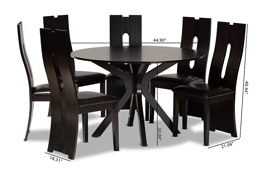 Acantha Dark Brown Faux Leather Upholstered and Dark Brown 7-Piece Dining Set