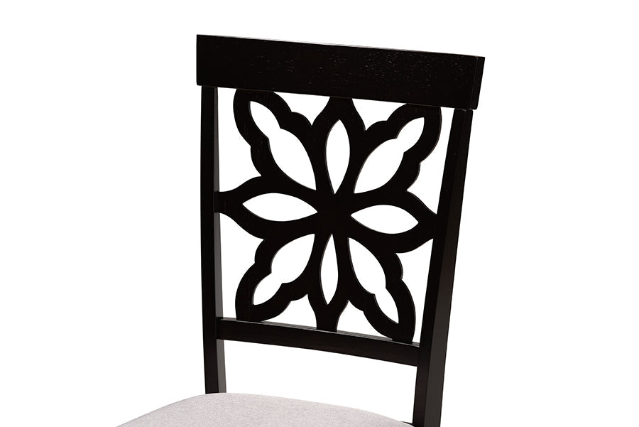 Classic design meets modern comfort with the Reba dining set. Made in Malaysia, the Reba includes one table and six chairs comprised of sturdy wood finished in a rich dark brown. Each chair is upholstered in soft fabric and padded with foam for supportive comfort. Requiring assembly, the large, rectangular tabletop allows ample elbow room for each member of the table. Ideal for both causal and formal occasions, the versatile Reba dining set easily upgrades the modern home.