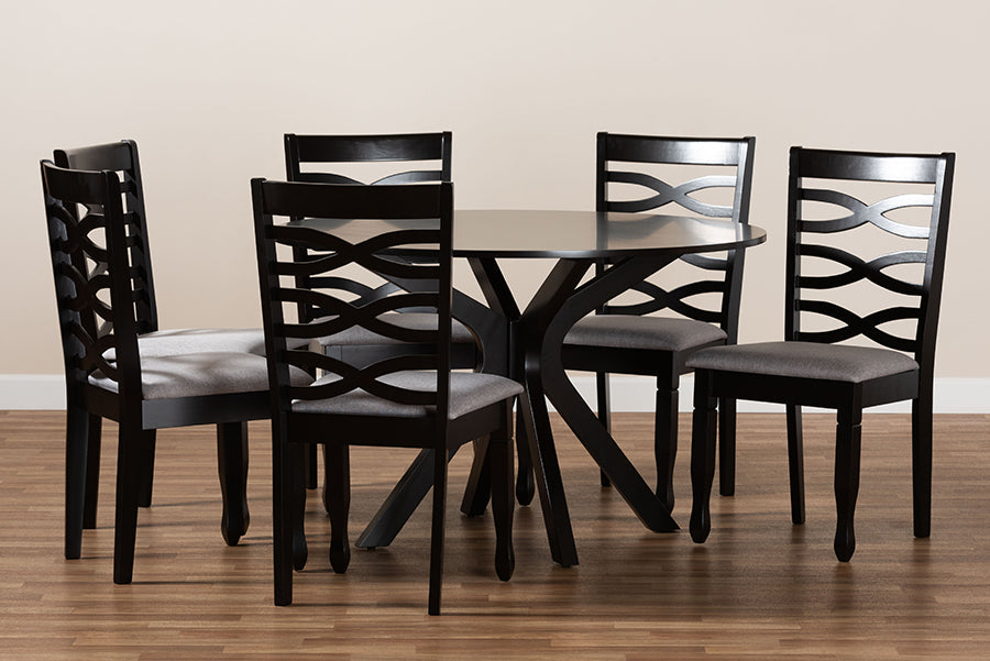 Meltem Gray Fabric Upholstered and Dark Brown 7-Piece Dining Set