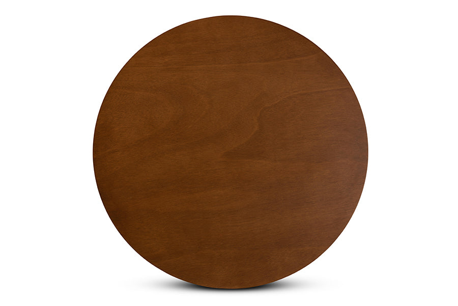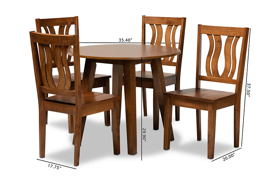 Featuring a unique, visually striking design, the Tania dining set adds elegance to any dining space. Made in Malaysia, this wooden set includes four chairs and one table showcasing a warm walnut brown finish. Each chair features a refined geometric cut out design on its backrest for added visual appeal, while a scoop seat lends casual comfort. Requiring assembly, the circular tabletop provides ample elbow room for each member of the table. Emanating graceful charm, the Tania dining set is an exceptional addition to the modern home.