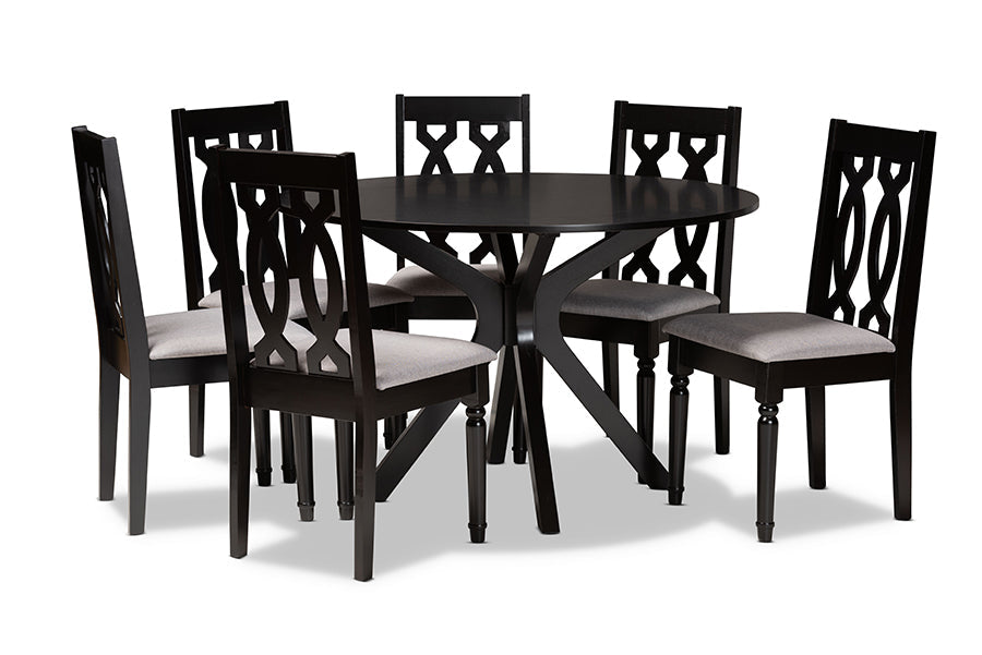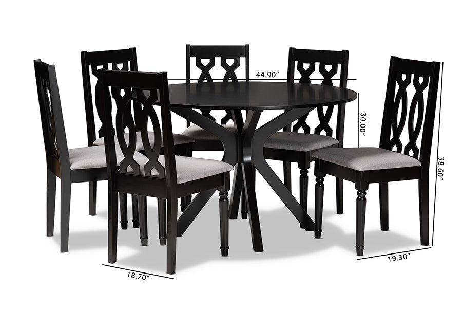 Sabriel Gray Fabric Upholstered and Dark Brown 7-Piece Dining Set