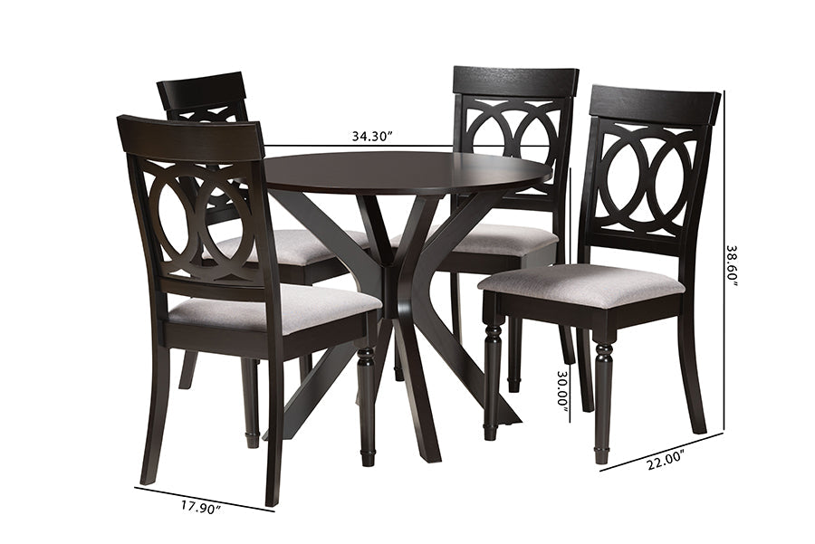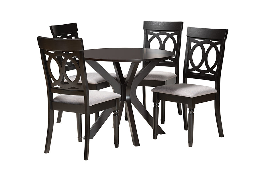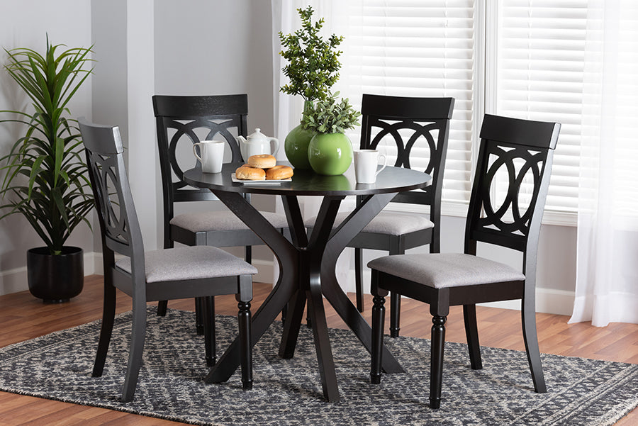 Enhance your dining space with the elegant style of the Sasa dining set. Made in Malaysia, this modern set includes four dining chairs and one table crafted from wood. Each chair includes a foam-padded seat upholstered with soft fabric along with an exquisite cut-out backrest. The Sasa requires assembly and features a round tabletop that provides ample elbow room for each member of the table. Well suited for both casual meals and formal dining, the Sasa dining set is an excellent upgrade to the modern home.