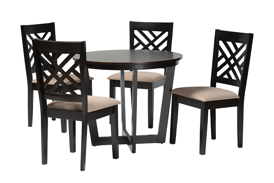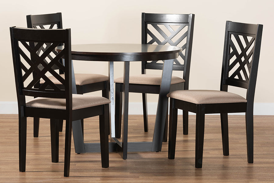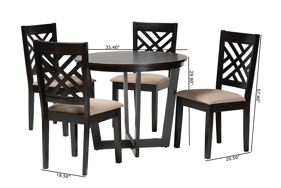 Siskal Modern Sand Fabric and Dark Brown 5-Piece Dining Set