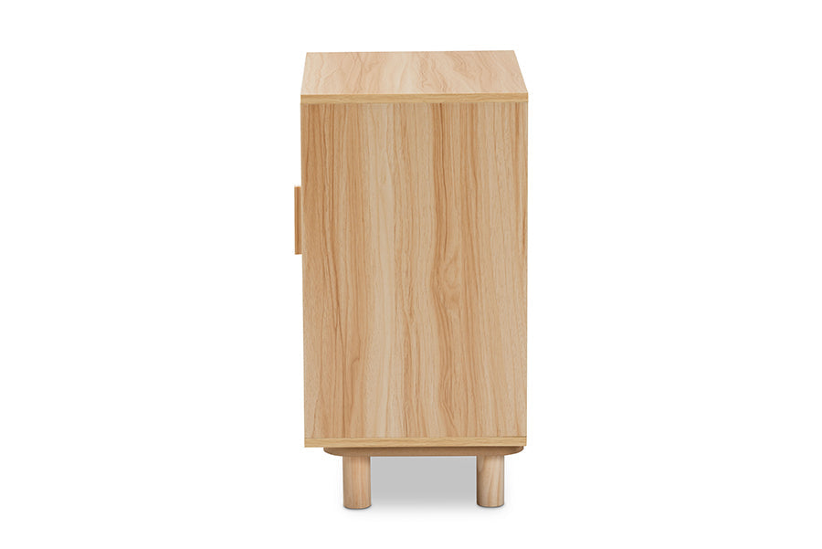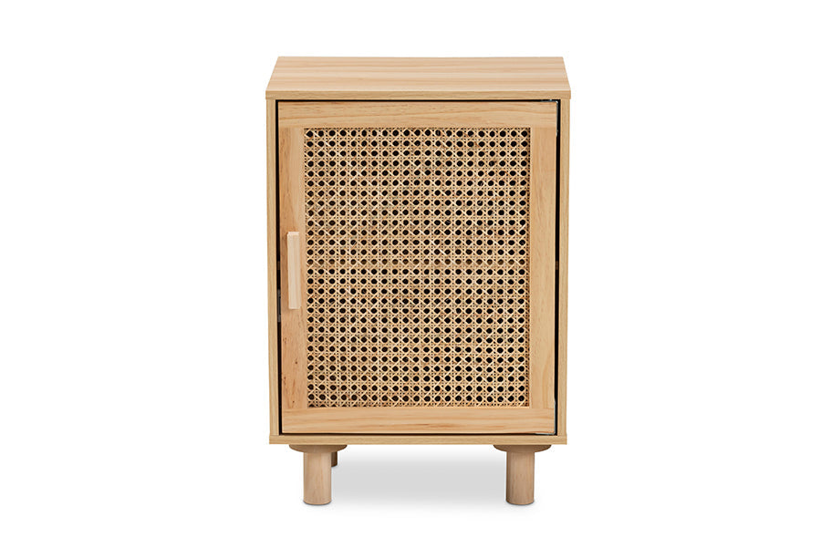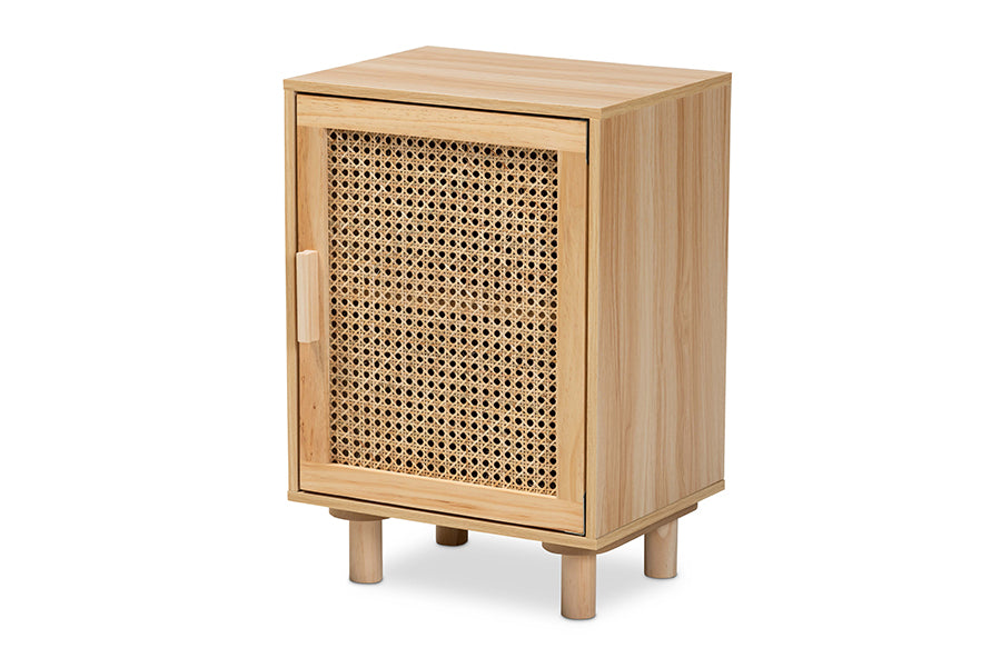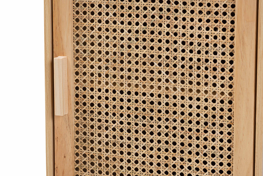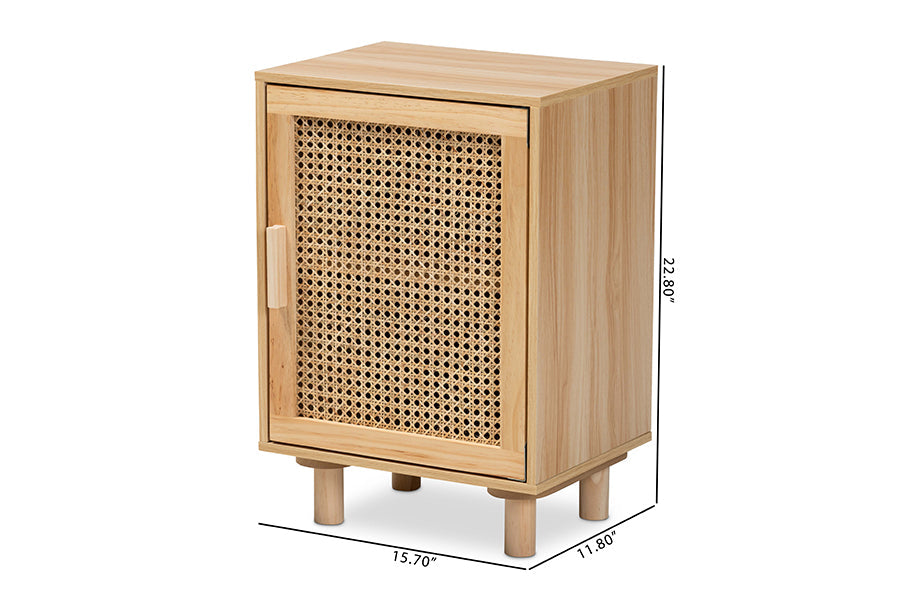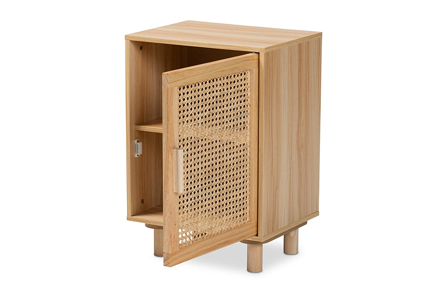 Presenting a light, airy display, the Ailith end table supports your evening routine. Made in China, this end table is crafted from sturdy wood and accented with natural rattan. Two shelves behind the door provide ample space to organize a variety of household essentials. Requiring assembly, the Ailith is supported by rodlike legs for a unique outline that exudes charm. A superb upgrade to any interior layout, the Ailith end table is a delightful addition to the modern home. This is a product of nature and may have variations in areas such as, but not limited to, color, pattern, grain and texture. The hair-like strands of rattan/rattan-fiber are common due to nature of the material.