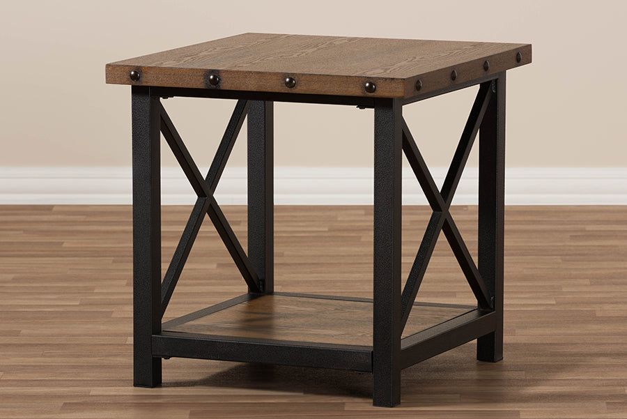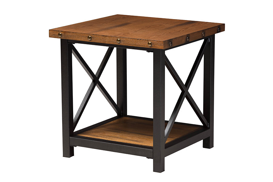 Marrying simple lines with industrial textures, the Tamira occasional end table is an end table at the height of rustic luxe. Antique black textured finished metal and distressed wood make this effortlessly chic side table your new living room staple. Featuring metal frame with X-shape design and antique decorative nail heads, the Tamira comes with one fixed shelf for the storage of magazines, books and controllers. When it comes to industrial style furniture, rich textures of metal combined with distressed wood are at the bedrock of this look, and this occasional end table is the perfect foundation piece for any industrial-inspired room. Made in China, the Tamira requires assembly.