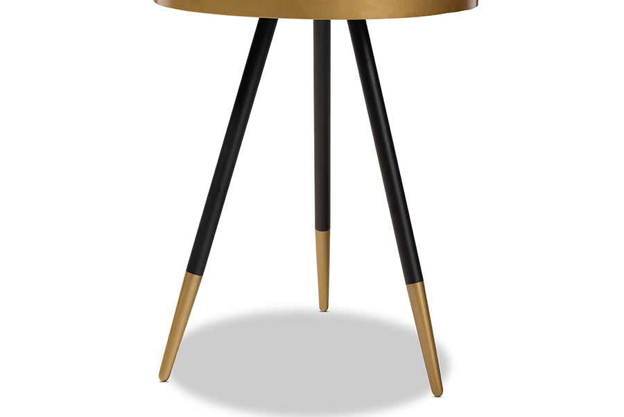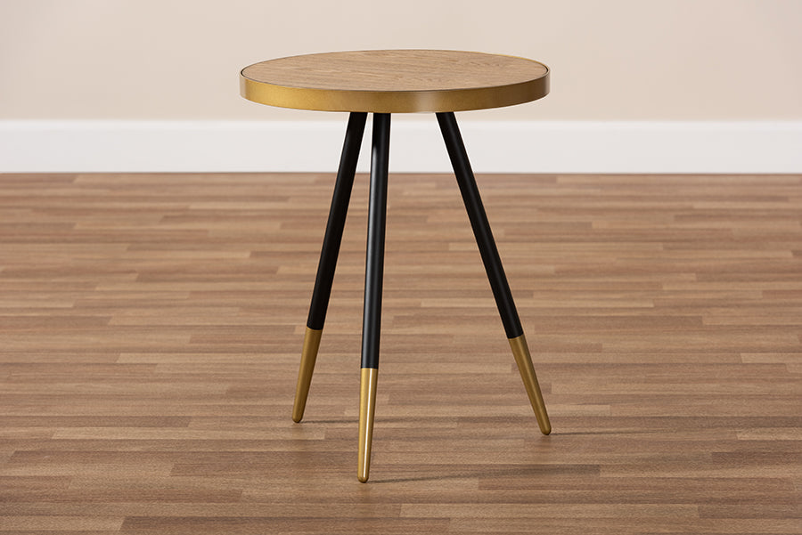A seamless blend of luxe elements makes the Alarice accent table a stunning addition to any living room or bedroom. Constructed from sturdy metal, the Alarice features a divine MDF wood tabletop that displays the natural beauty of the wood grains. The tabletop is encased within a striking gold-finished frame which provides a sense of harmony among the two-tone black and gold-tone table legs. Use this magnificent piece as an end table in the living room or as a nightstand in the bedroom. The Alarice end table is made in China and requires assembly.